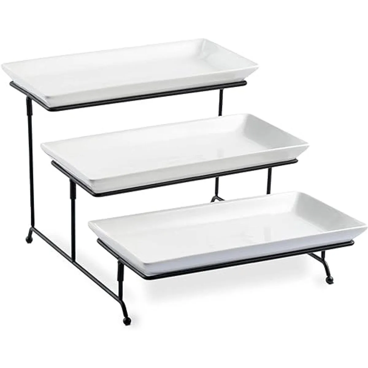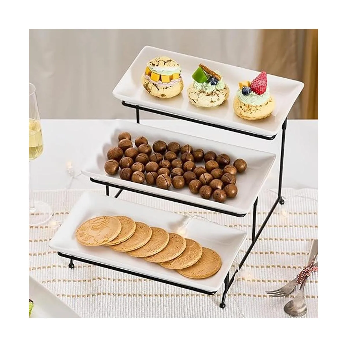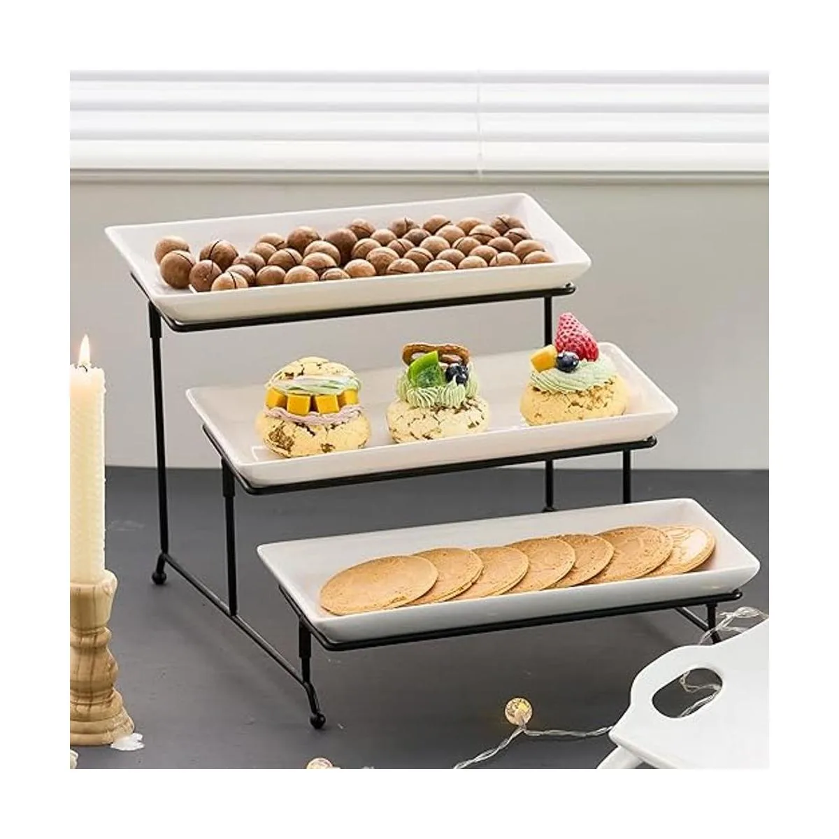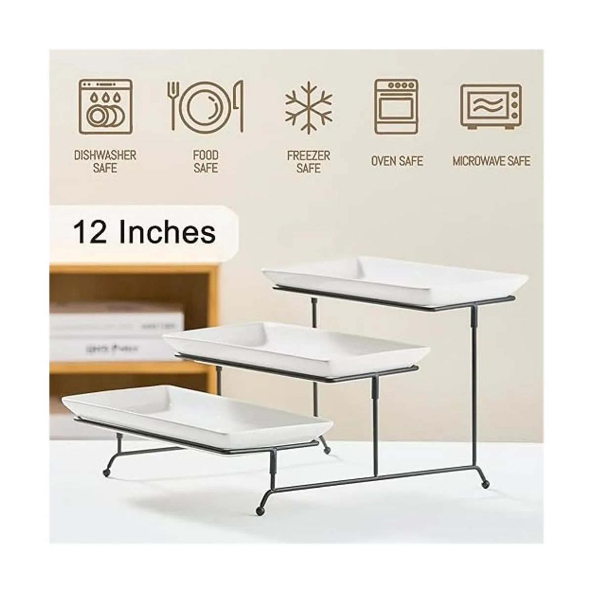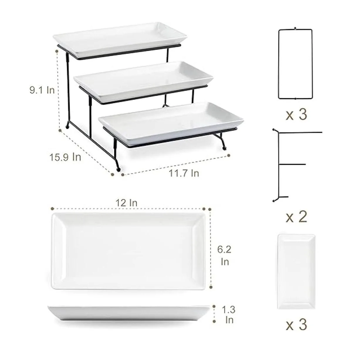 Hecho de porcelana blanca, el gran soporte rectangular escalonado es ideal para cualquier evento interior o buffet. Estos platos para servir también tienen el tamaño perfecto para contener una variedad de alimentos, sushi, cupcakes, varios quesos y postres, salsas de frutas, aperitivos, aperitivos.
