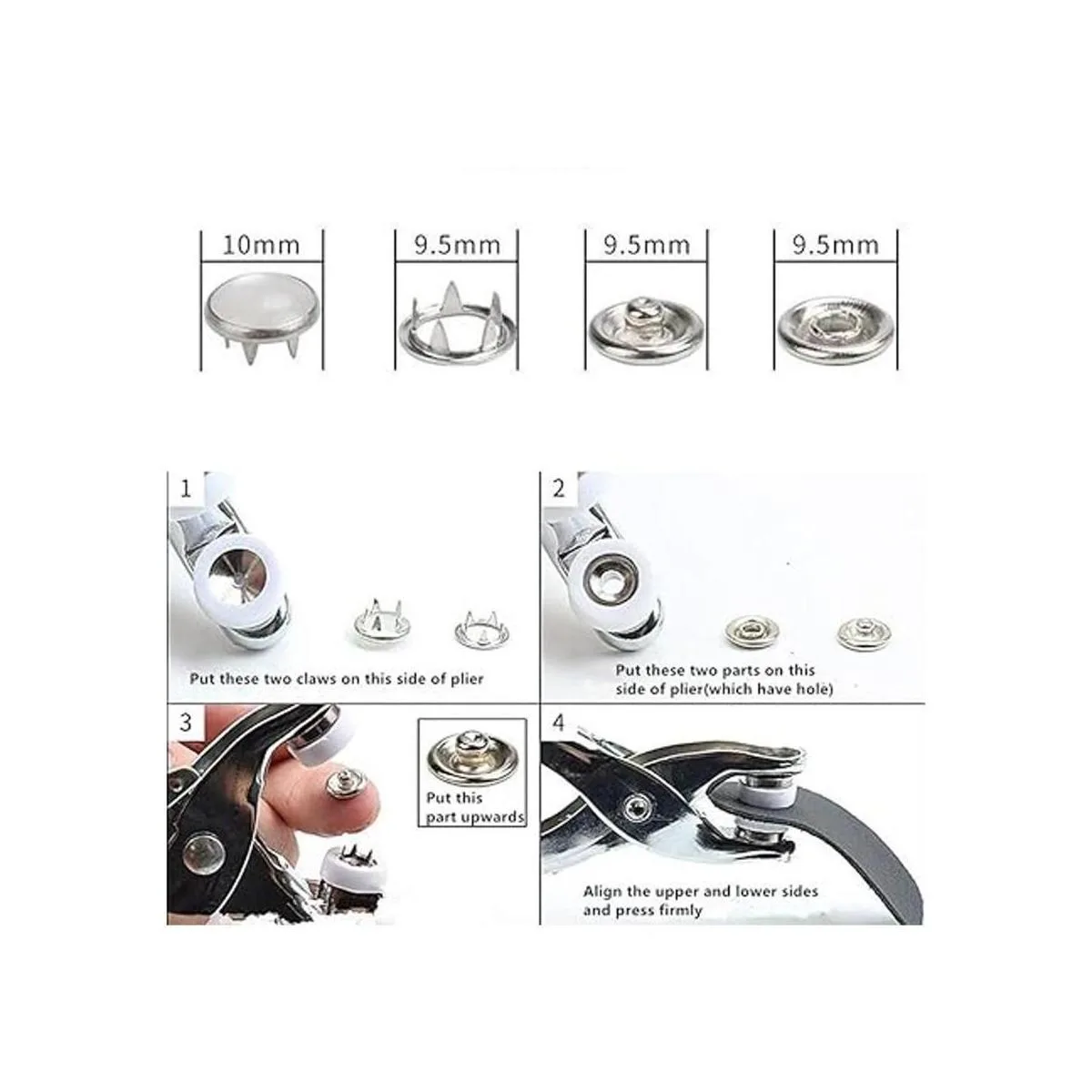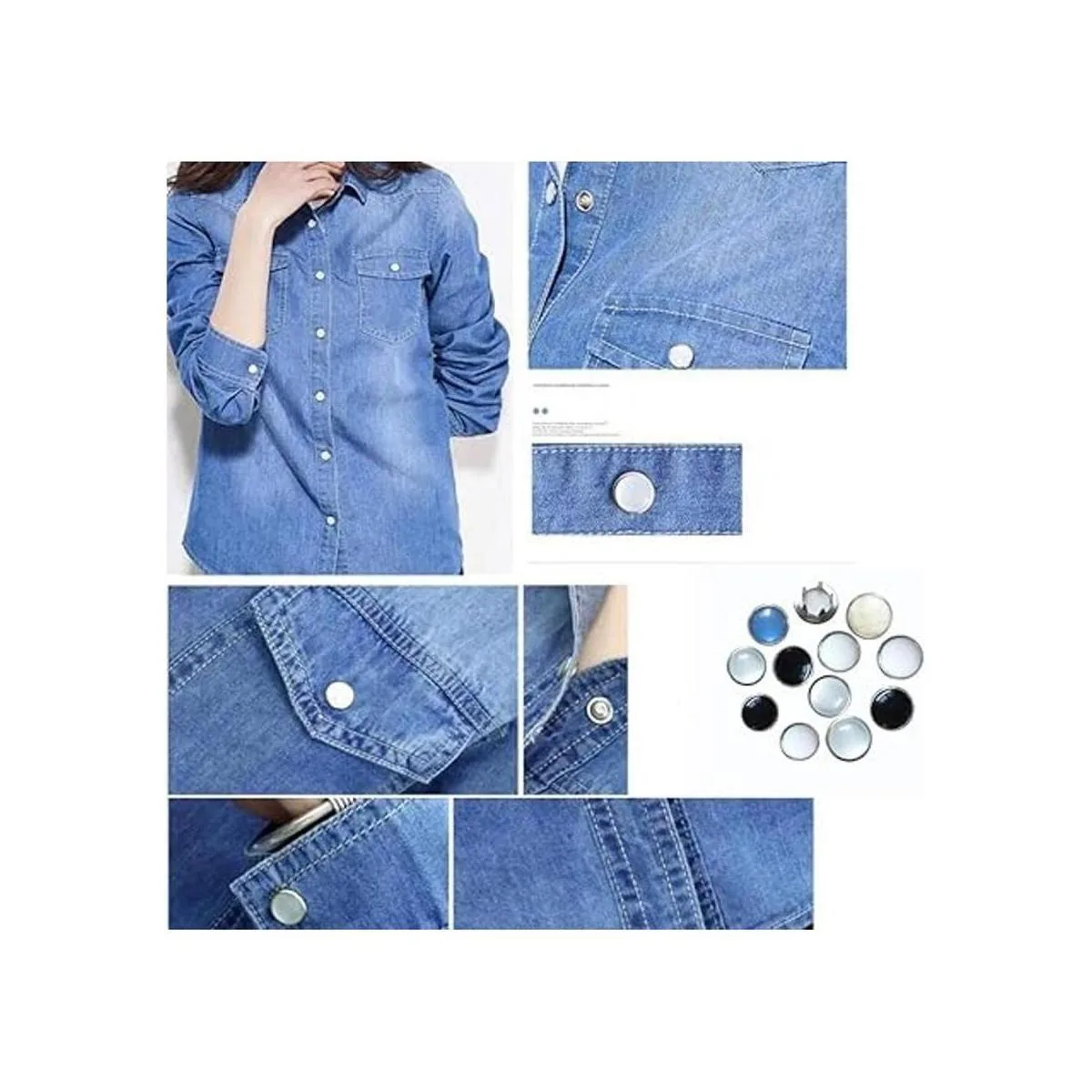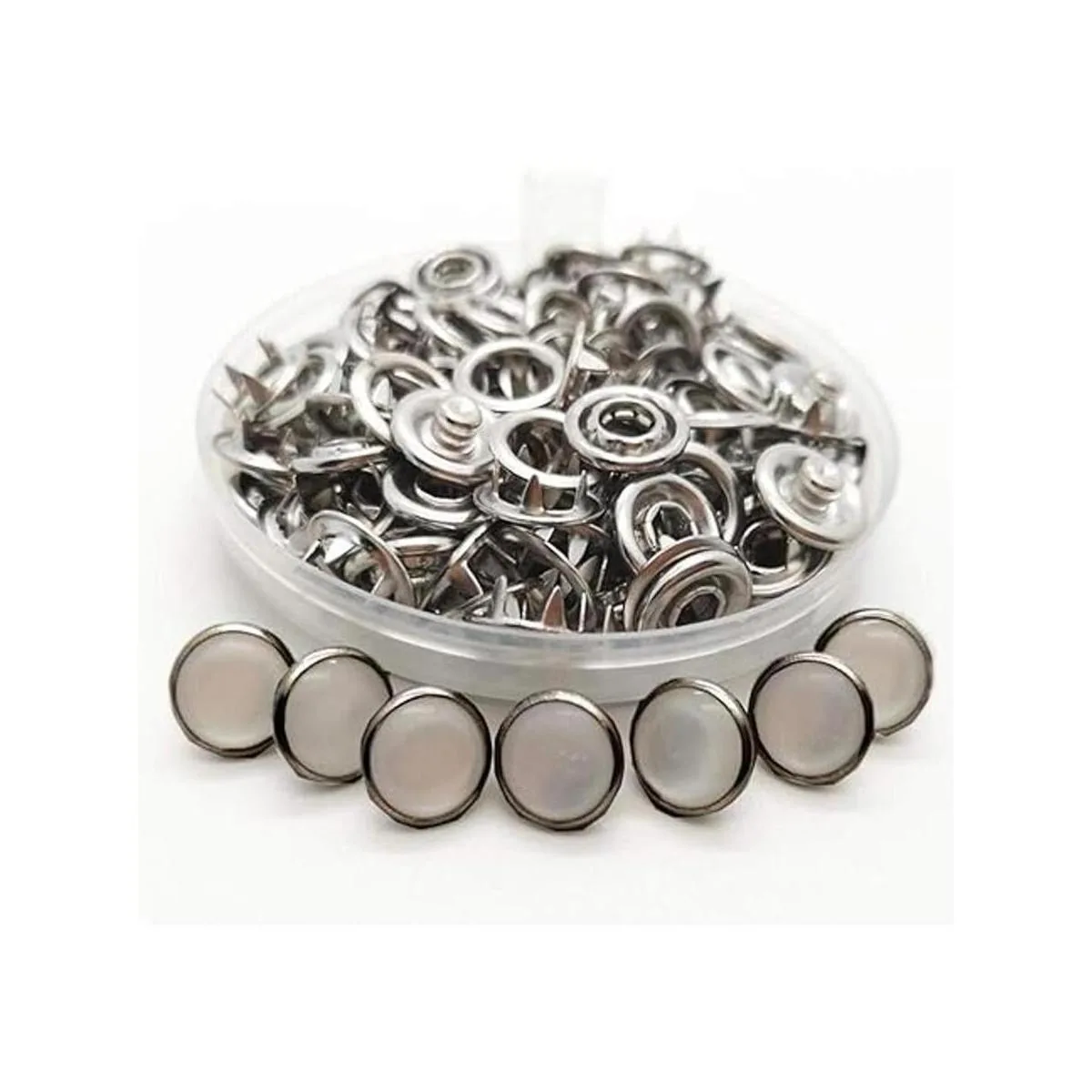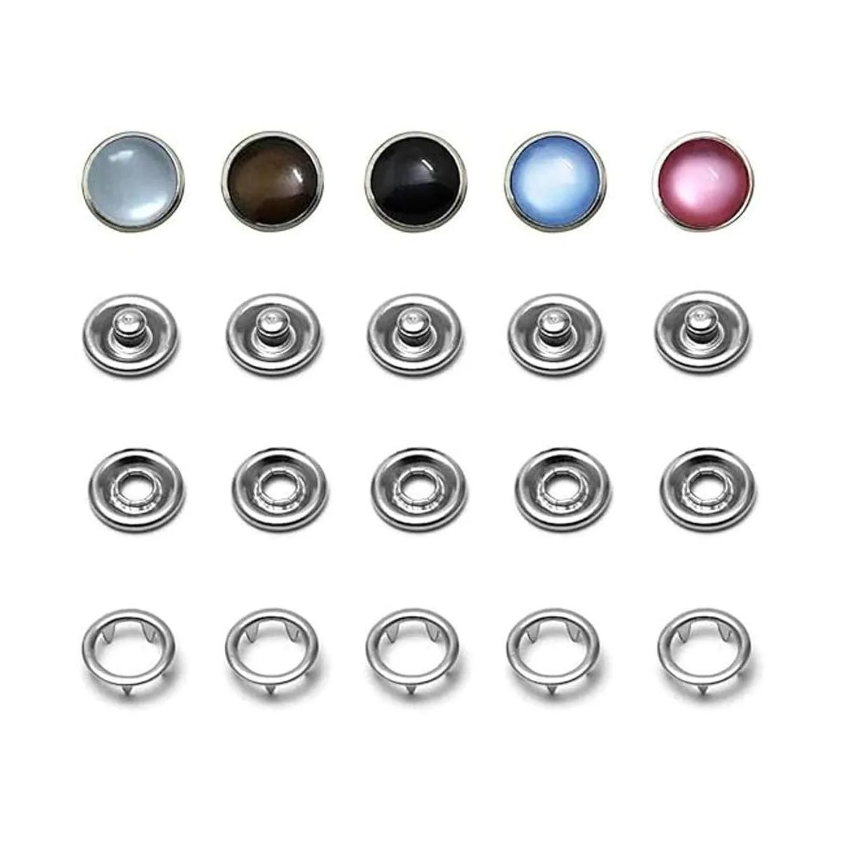 Cantidad: el paquete incluye 50 juegos de botones a presión 10 juegos de 5 colores, 50 piezas de cada pieza, instalación de peaje no incluido