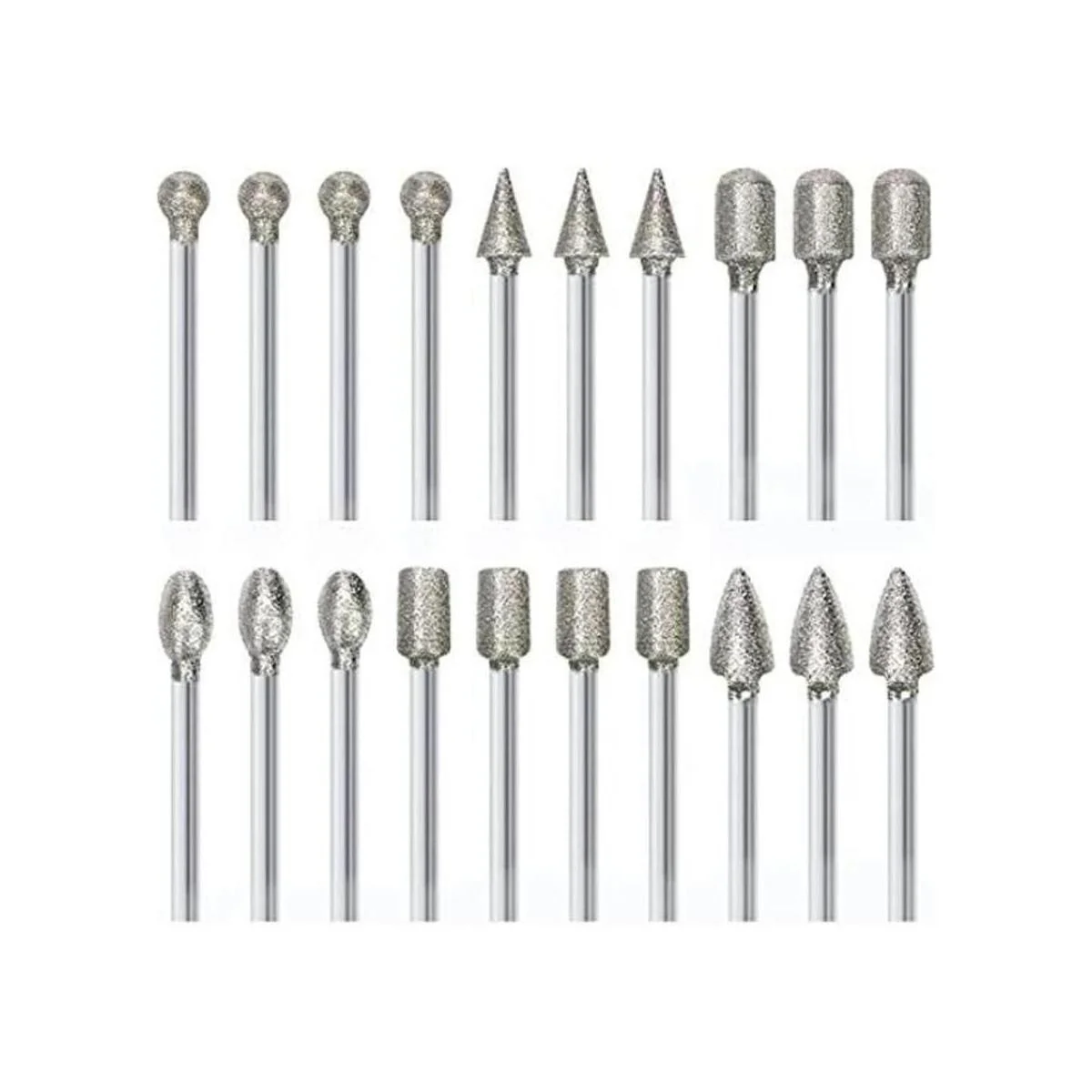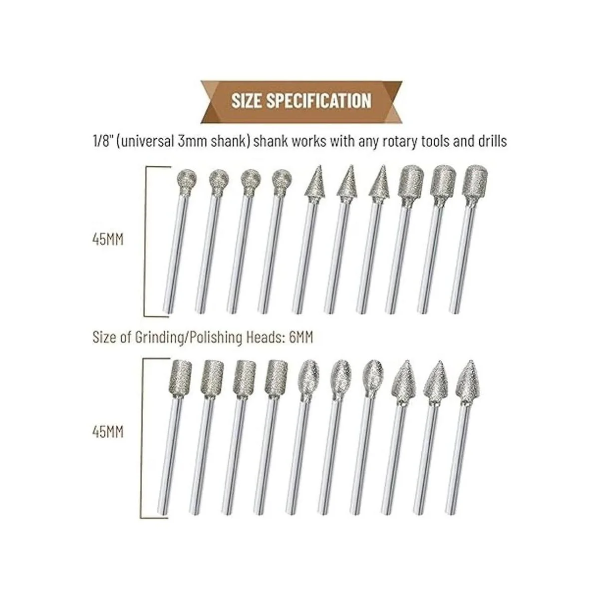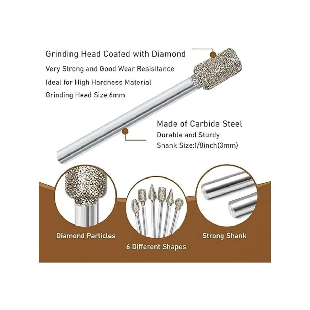 Juego de talla de piedra pulido rebabas de diamante, herramientas rotativas Accesorios de pulido rebabas con vástago de 18 para tallar, moler, piedra de pulido, vidrio, joyas, cerámica Ajuste universal para herramientas rotativas