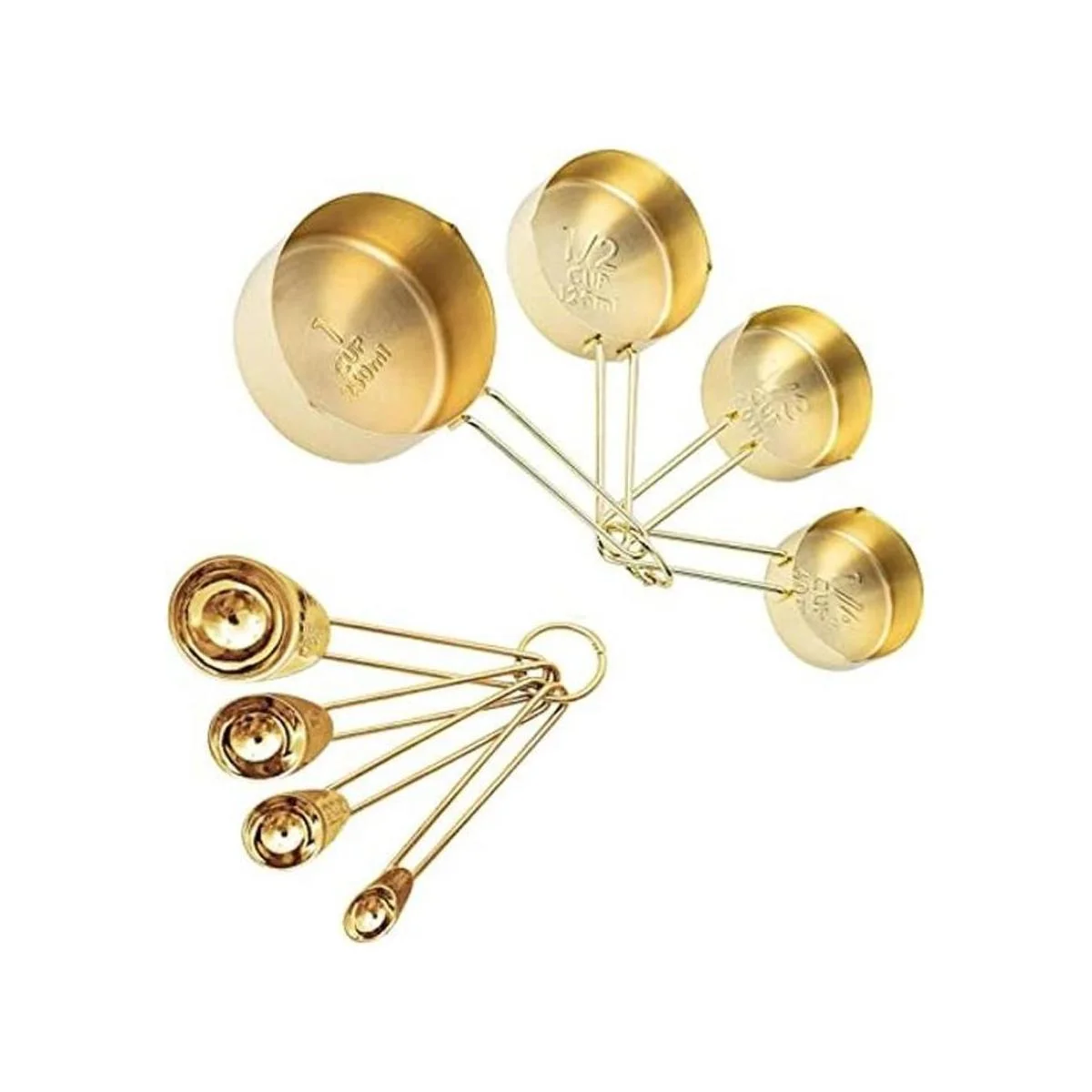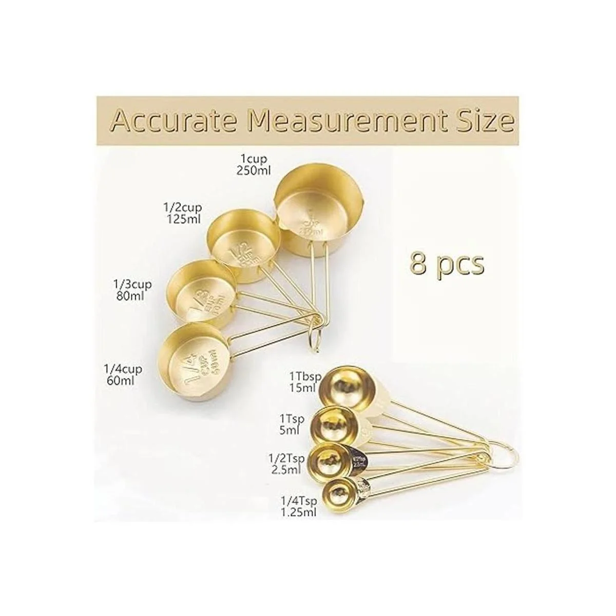 Juego de tazas y cucharas medidoras, 8 piezas de tazas medidoras de metal y cucharas medidoras de metal, juego de 8 piezas para hornear, té, café y té, herramientas de medición 8 piezas, oro