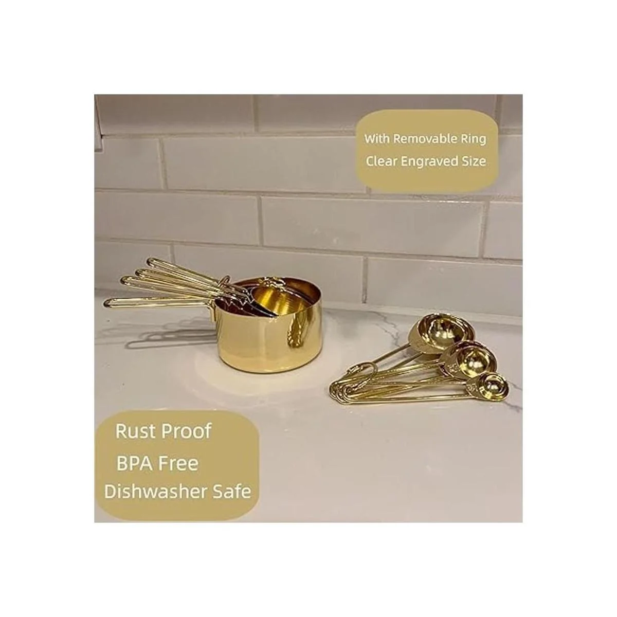 Calidad profesional: construcción de acero inoxidable resistente, estas cucharas y tazas medidoras de metal ofrecen una durabilidad superior a la cerámica o el plástico; fácil de limpiar y resistente a la corrosión; gran adición a accesorios de cocina dorados y decoración de cocina dorada.