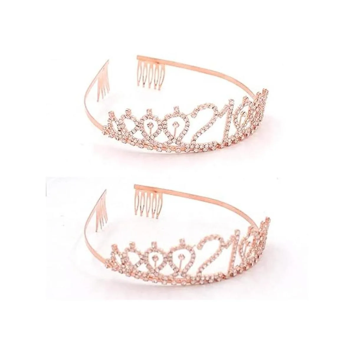 Juego de tiara con marco y diamantes de imitación, para cumpleaños, para fiestas de cumpleaños negro, dorado rosa