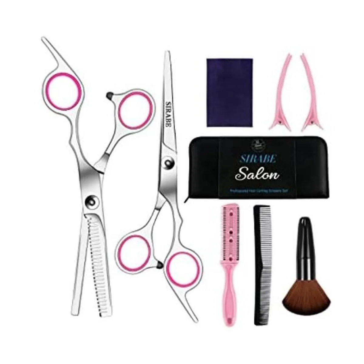 Moderno y práctico: Viene con un estuche de cuero para proteger y manejar tus herramientas de corte de cabello, dándoles una larga vida útil. El juego de tijeras para corte de cabello Sirabe es ideal para principiantes, trabajadores de peluquería, barberos, para uso doméstico y uso personal, etc