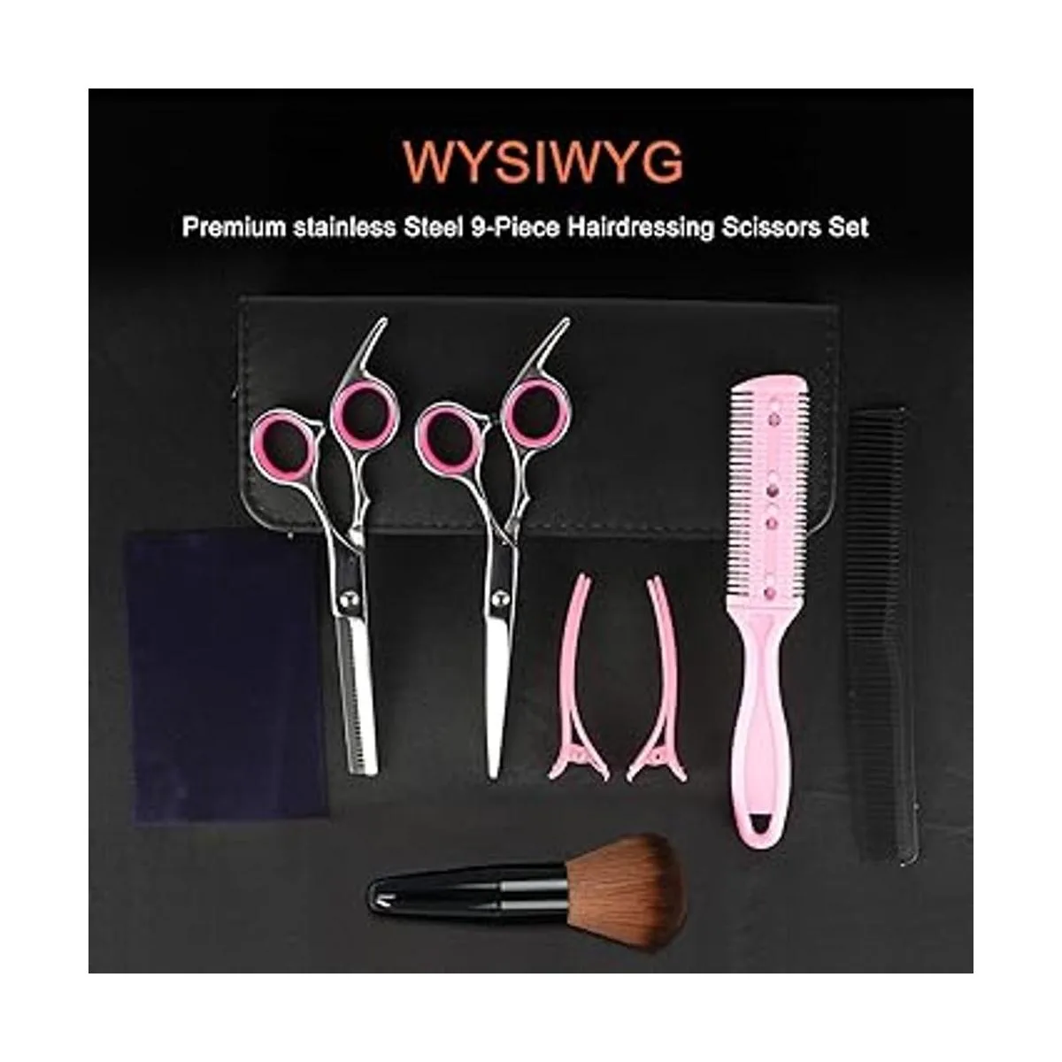 El paquete incluye: 1 tijeras de cabello, 1 tijeras de adelgazamiento, 1 peine para afeitar el cabello, 1 paño de limpieza, 1 peine, 2 horquillas; 1 bolsa de cuero, 1 plumero de cuello. El juego para corte de cabello cumple con todas tus necesidades de corte y de peinado.