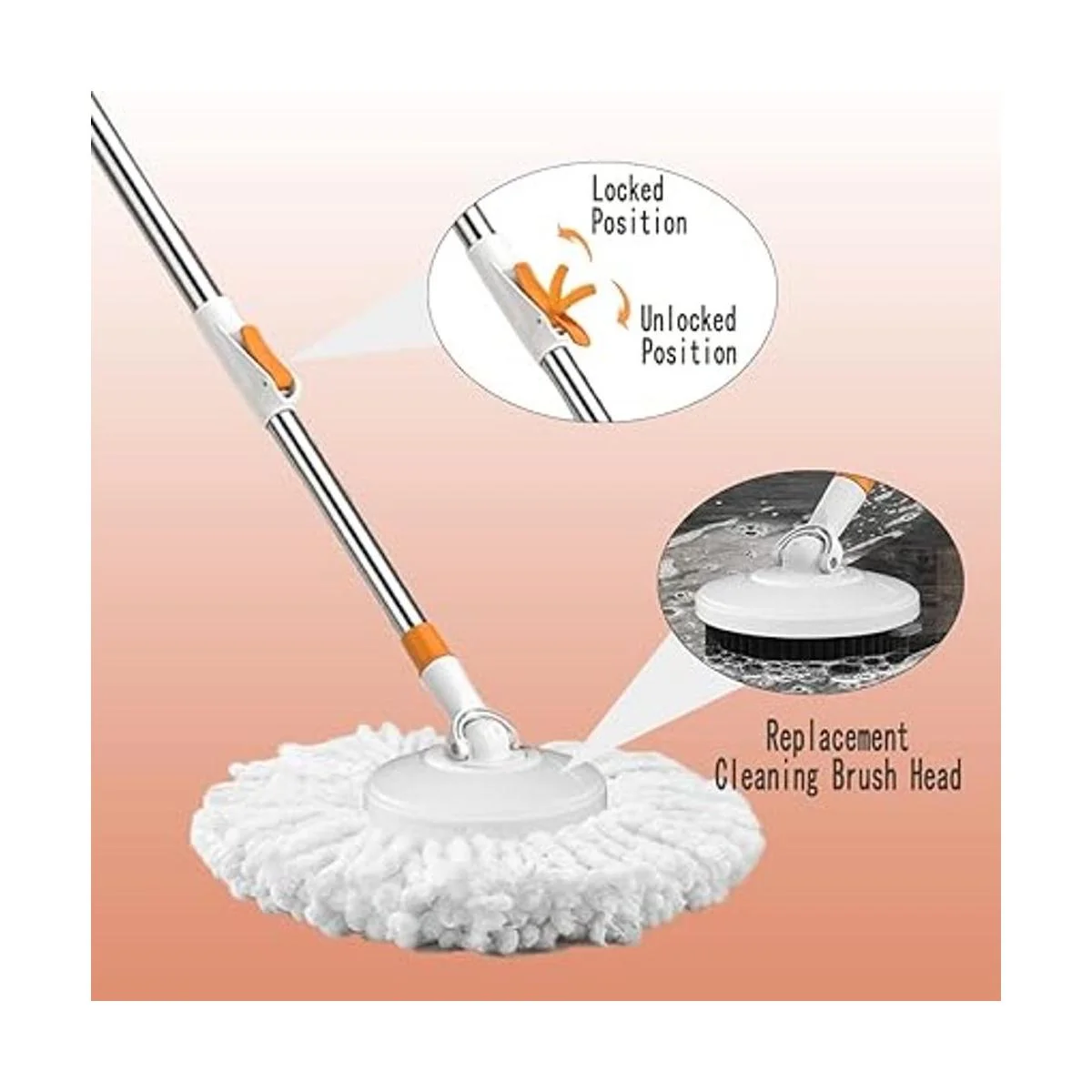 Juego de trapeador giratorio y cubo con sistema de escurridor, mango de acero inoxidable extendido de 61 pulgadas para uso de limpieza de pisos en el hogar con 5 repuestos de cabezales y 1 cabezal de cepillo de limpieza