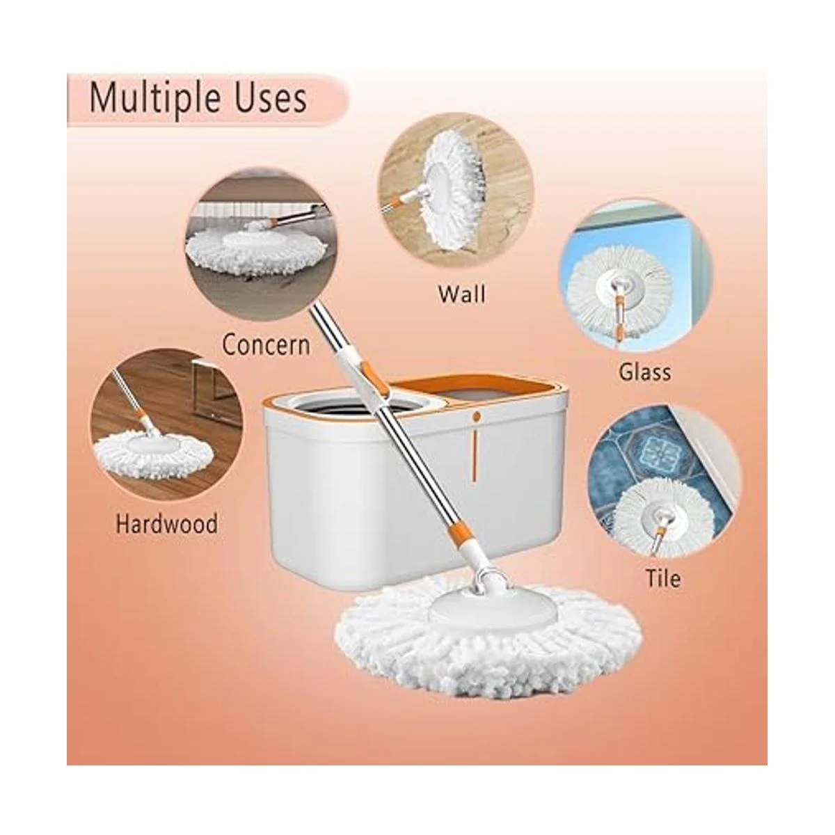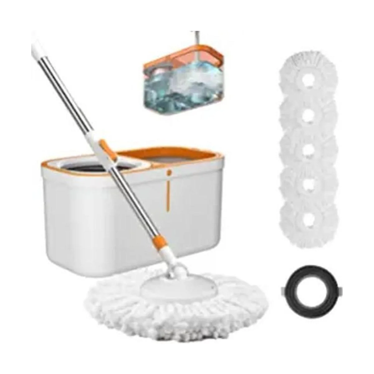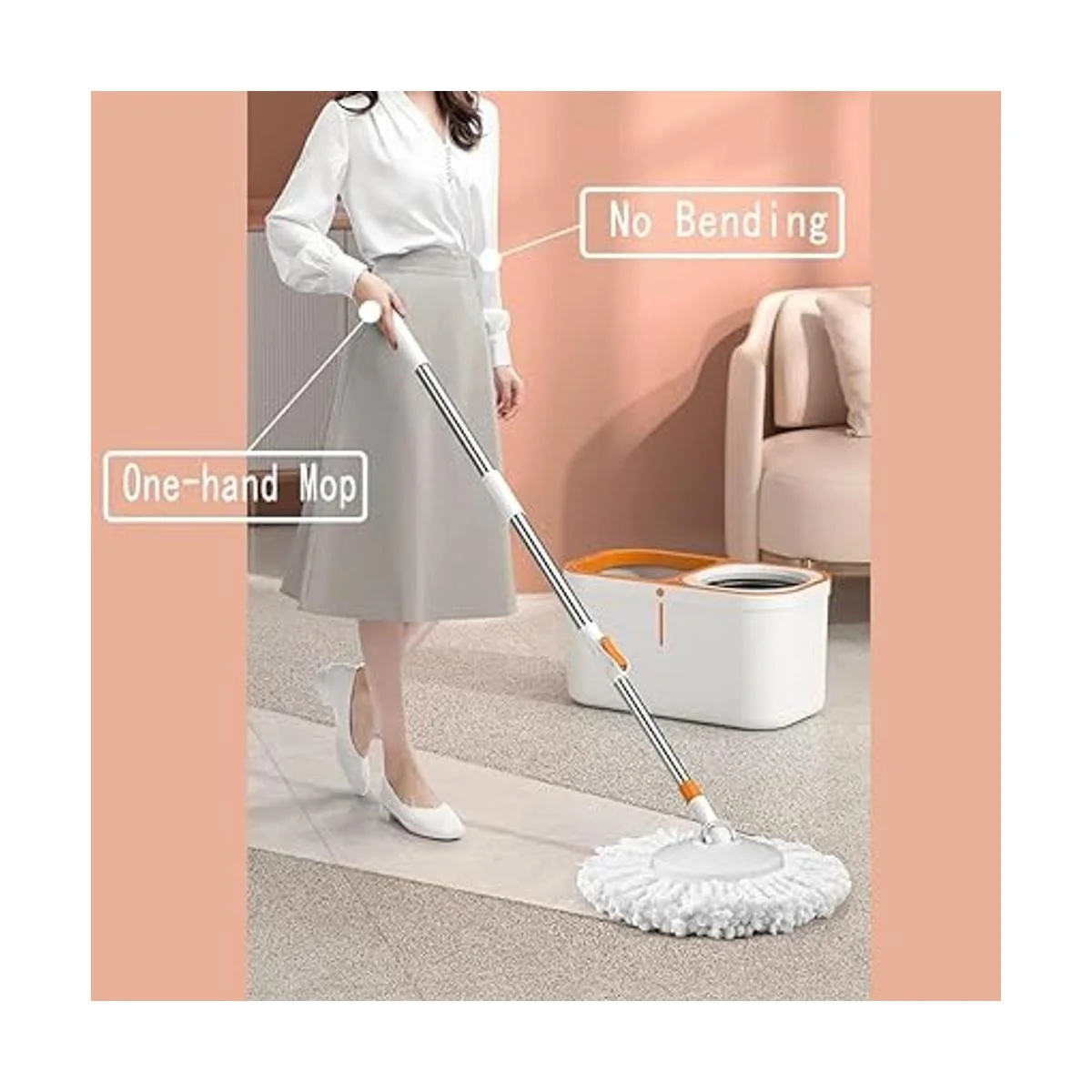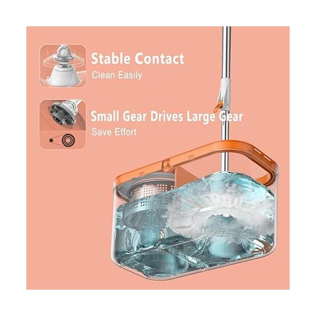 Fregona giratoria con menos esfuerzo: el cabezal giratorio de la fregona puede escurrir con solo una suave presión hacia abajo. El cubo de fregona con sistema de desriego centrífugo separará rápidamente el agua para lograr el efecto que desees.