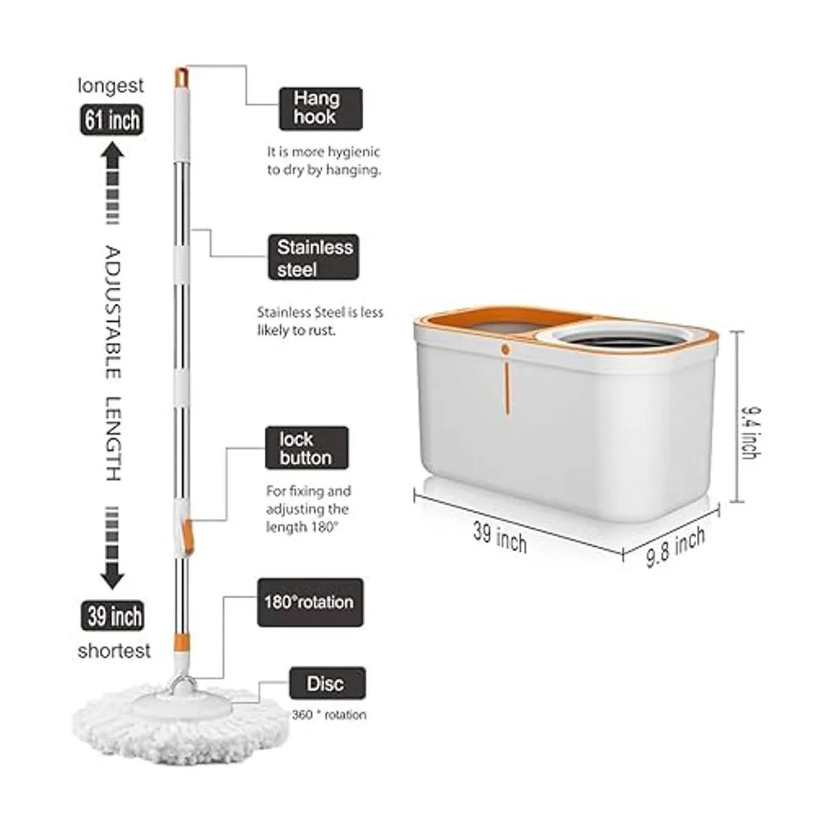 Mango extendido de acero inoxidable de 61 pulgadas: el mango giratorio de la fregona es de metal, muy resistente. Mango de acero inoxidable extendido a 61 pulgadas, no hay necesidad de doblarse para sostenerlo al trapear.