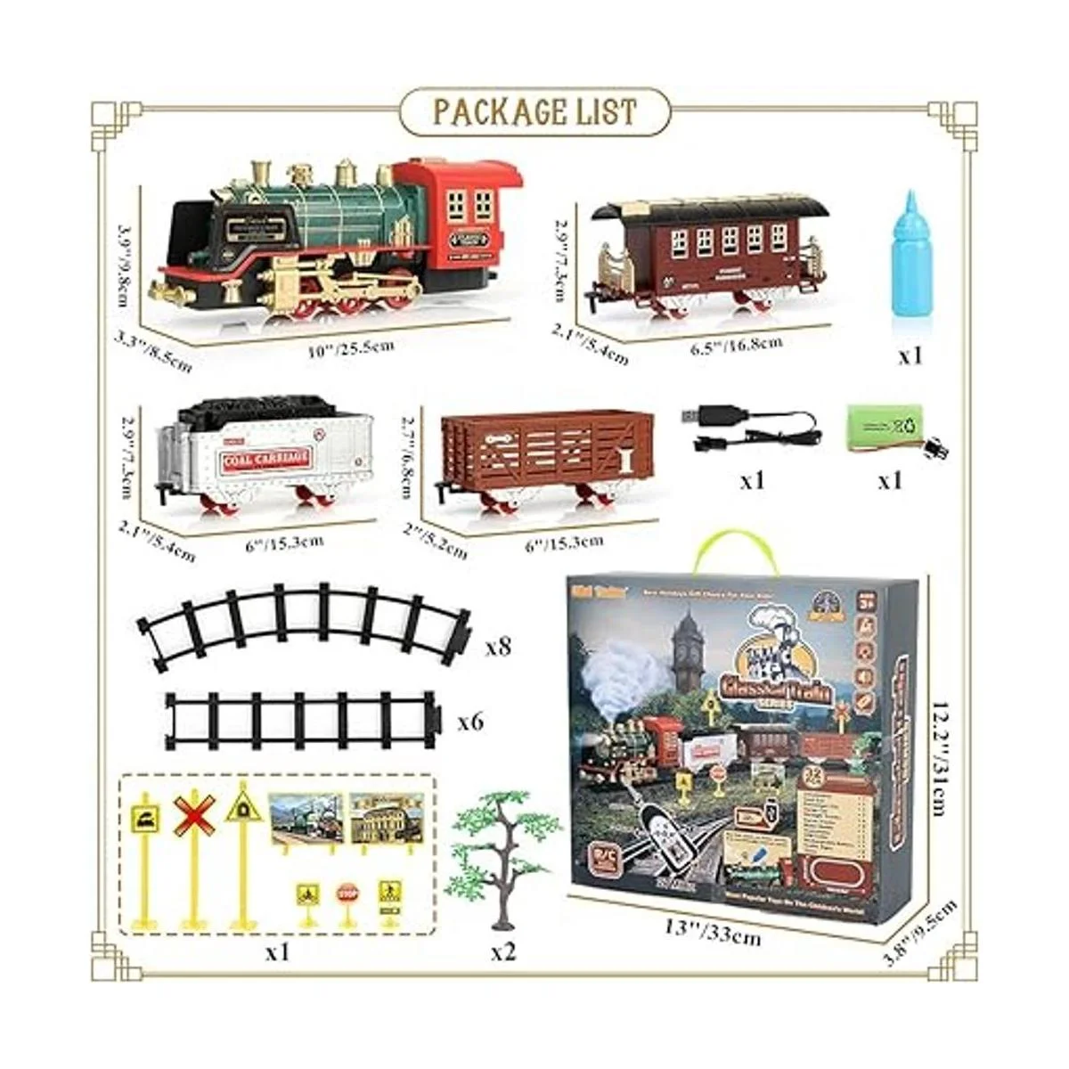 Juego de tren eléctrico de Navidad con vapor, sonido y luz, juguetes de tren de control remoto con motor de locomotora de vapor, autos de carga y pistas, tren de juguete con batería recargable para niños de 3, 4, 5, 6, 7, 8 años de edad