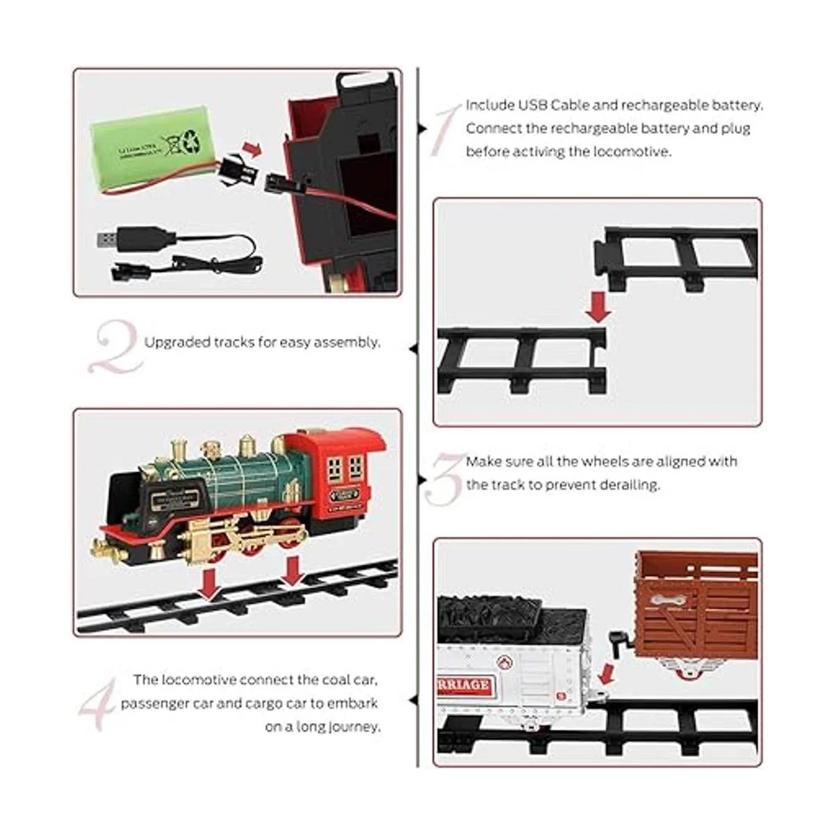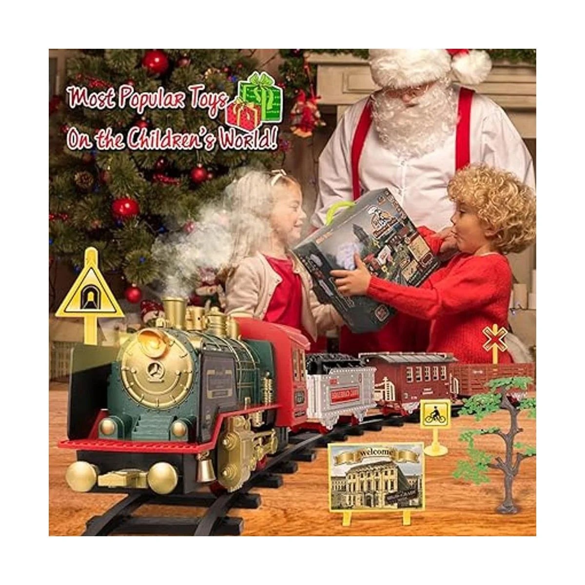 Juego de tren de Navidad retro ChooChooChoo… Mini Tudou retro clásico juguete de tren de vapor está llegando Una locomotora clásica de vapor con el coche de carbón, el coche de pasajeros y el vehículo de carga está conduciendo alrededor del árbol de Navidad. Como uno de los juguetes más queridos de varias generaciones, los padres contarán la historia del tren clásico y traerán de vuelta a los niños a la Edad del Vapor para aprender más conocimientos con diversión sin fin.