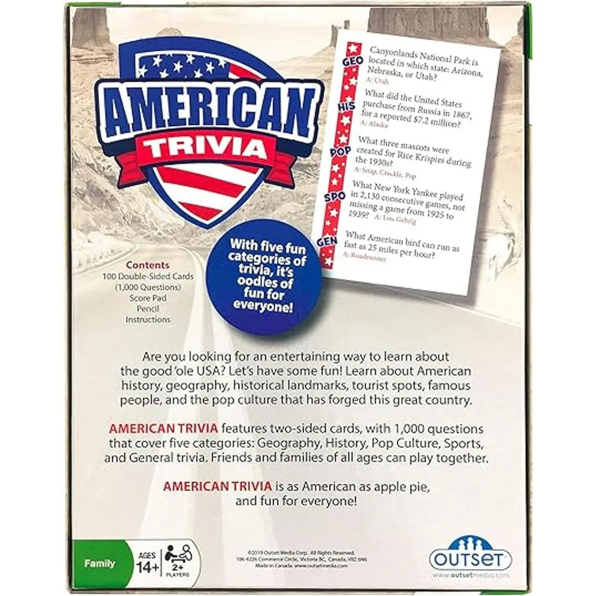 Juego de trivia estadounidense exclusivo de Amazon 5 categorías para elegir y 1,000 preguntas para edades de 14 años en adelante por Outset Media