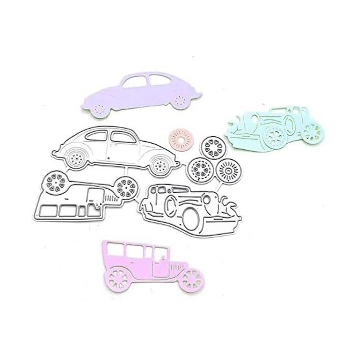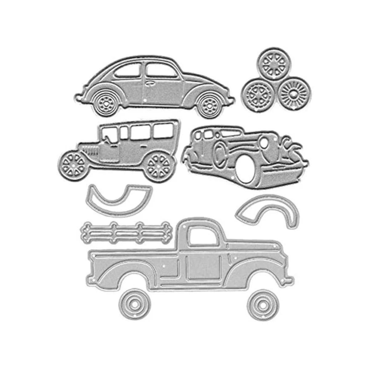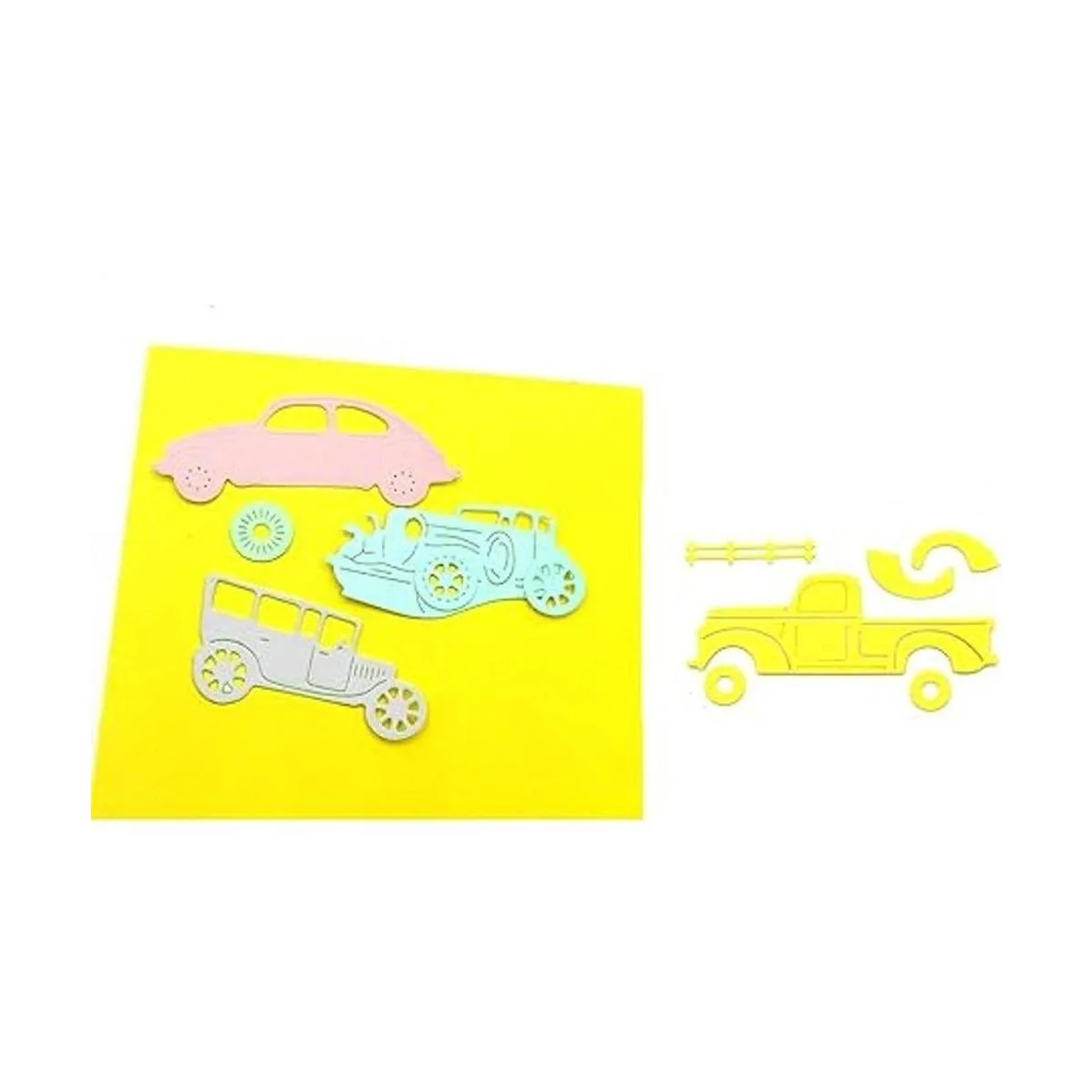 Juego de troqueles de corte con forma de camioneta de metal de 3 sedanes, troqueles de rueda de automóvil para hacer tarjetas, herramientas de relieve, plantillas de álbumes de recortes, troqueles de manualidades grabados