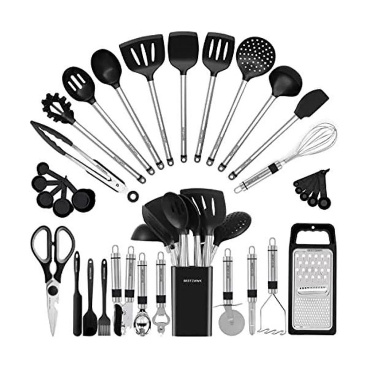 Juego de utensilios de cocina, utensilios de cocina de silica, 33 utensilios de cocina y cucharas para utensilios de cocina antiadherentes, juego de espátulas de silicona y acero inoxidable, las mejores herramientas de cocina, ollas y sartenes útiles accesorios