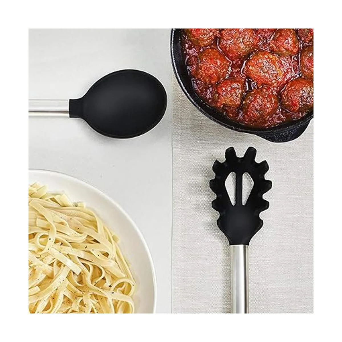 Fácil de limpiar y almacenar: nuestros utensilios resistentes al calor son rápidos, simples y fáciles de limpiar. Simplemente mételos en el lavavajillas para lavar cualquier grasa o aceite en cuestión de segundos y cuenta con pequeños agujeros en las asas para que puedas colgarlos para guardarlos sin ocupar mucho espacio.