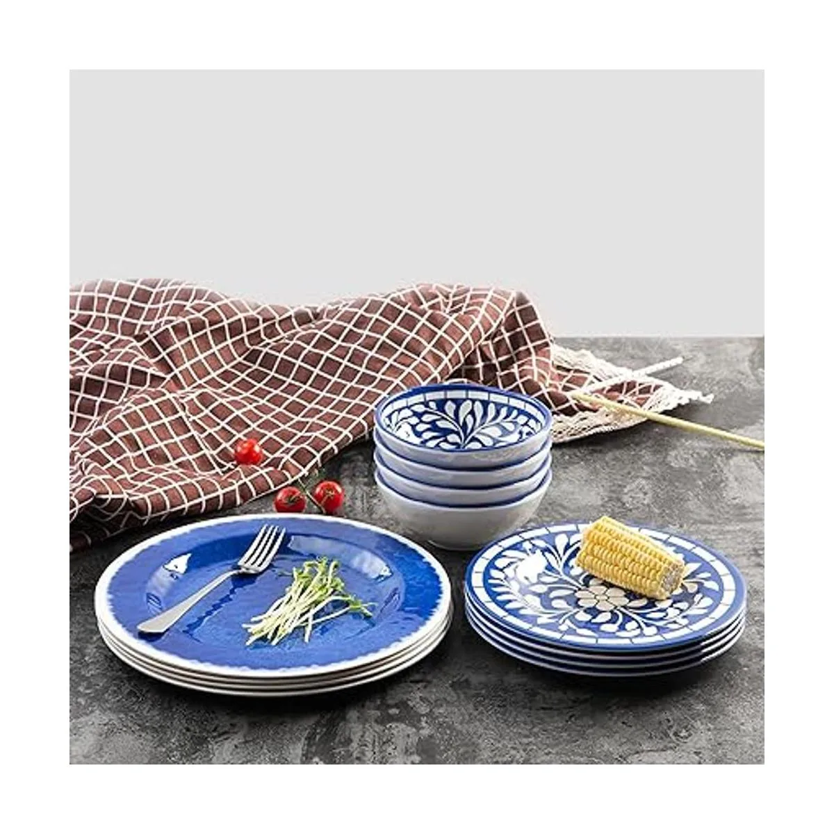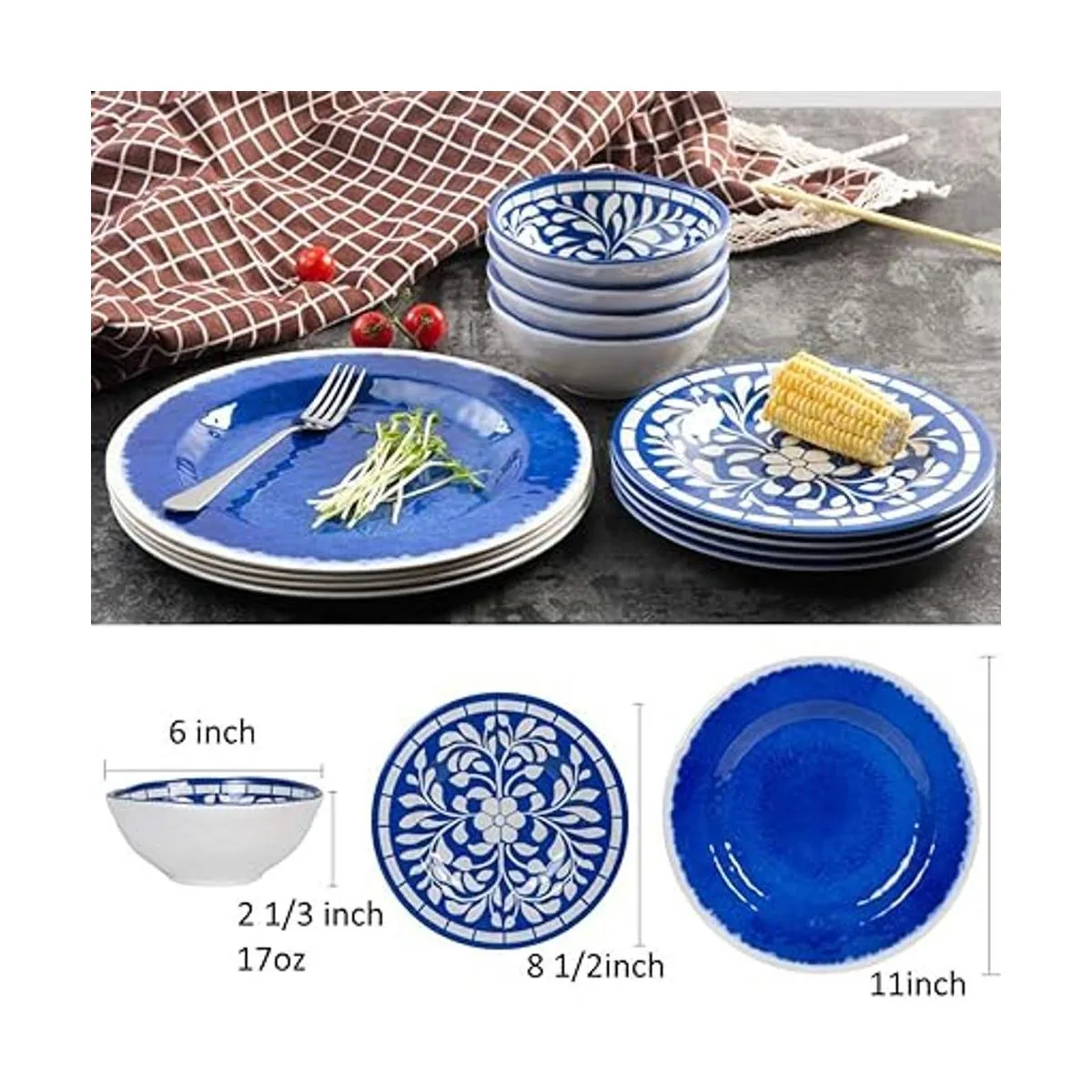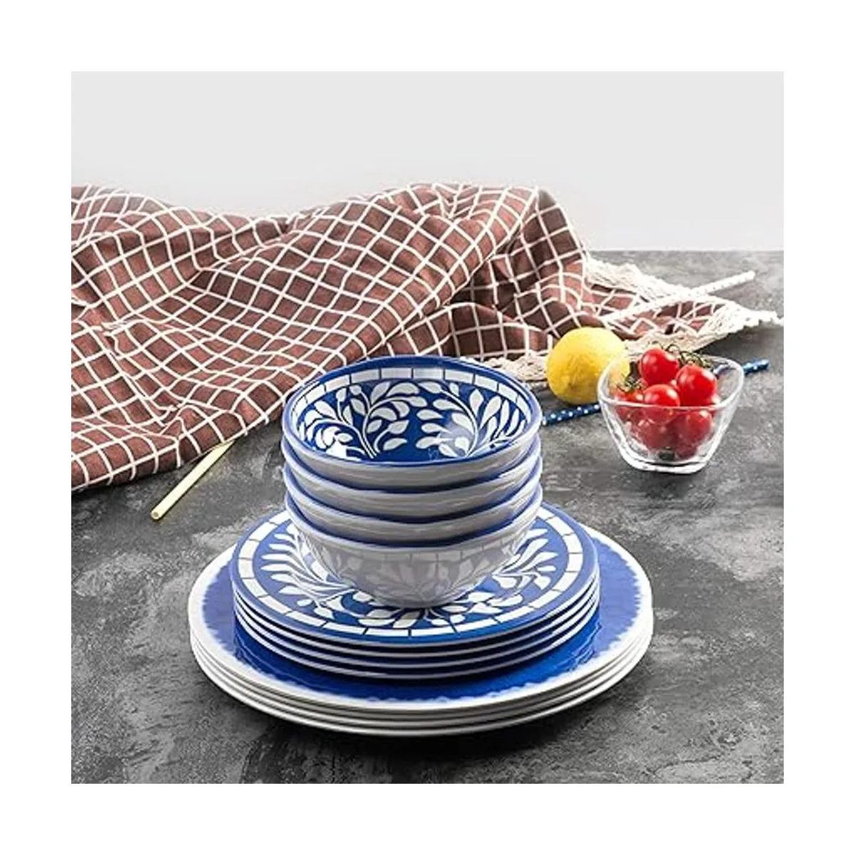 Juego de vajilla de melamina, 12 piezas para uso en exteriores, apto para lavavajillas, ligero, duradero, color azul, Vajilla, Azul