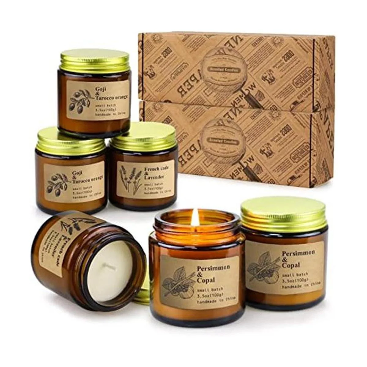 Seis fragancias: Madera de teca de cedro, pomelo dulce, Mimurhyl sándalo ámbar, rosa fresca, higo mediterráneo y granate rosa. Estas velas ofrecen una experiencia de fragancia consistente de principio a fin. El aroma permanece incluso después de que las velas se quemen.