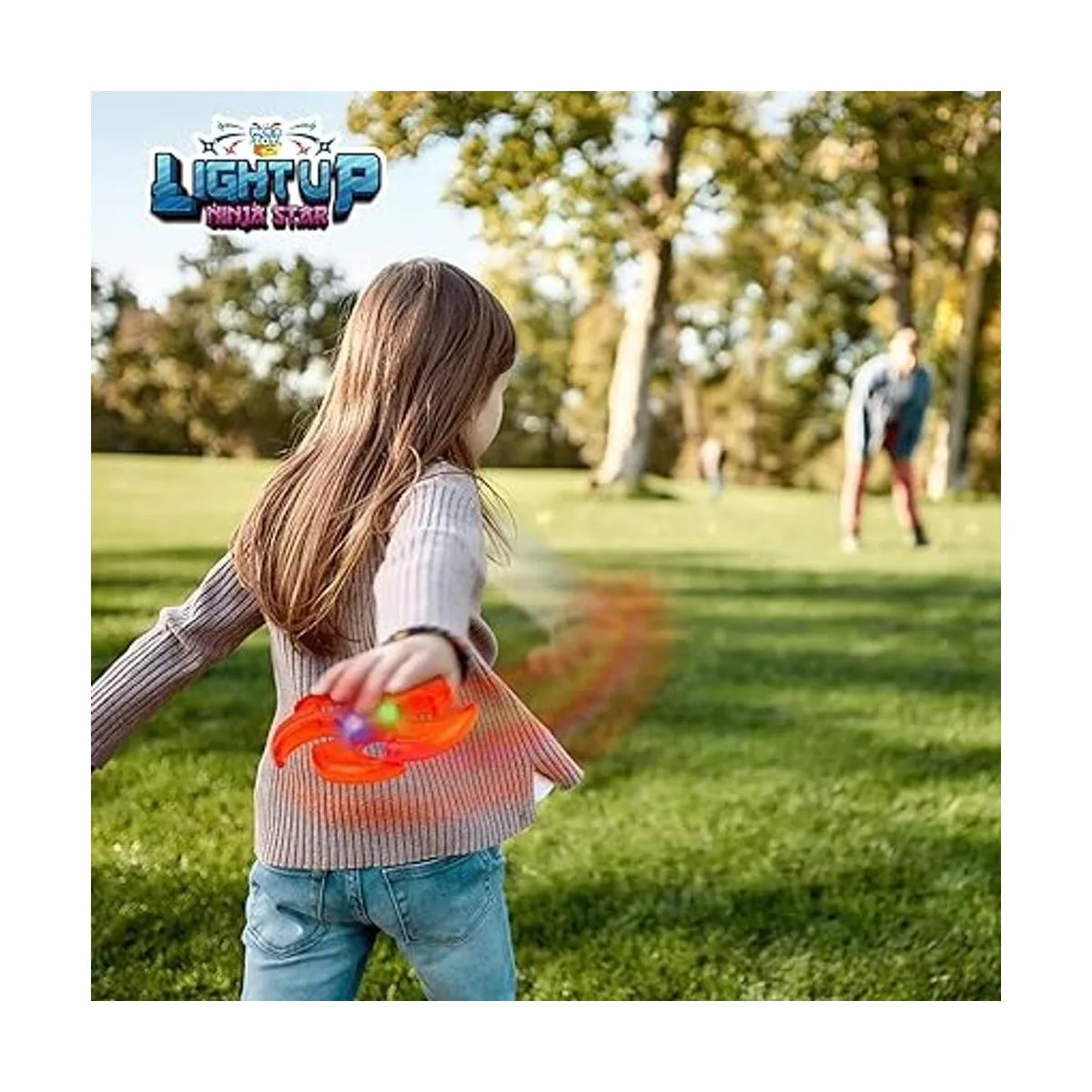 Juguetes Shuriken Throwing Star Estos folletos ninja iluminados brillan en la oscuridad gracias a las luces LED alimentadas por pilas en el interior. Los niños encontrarán toneladas de formas de jugar y lanzarlos para juegos, desafíos, jugar a atrapar y mucho más.