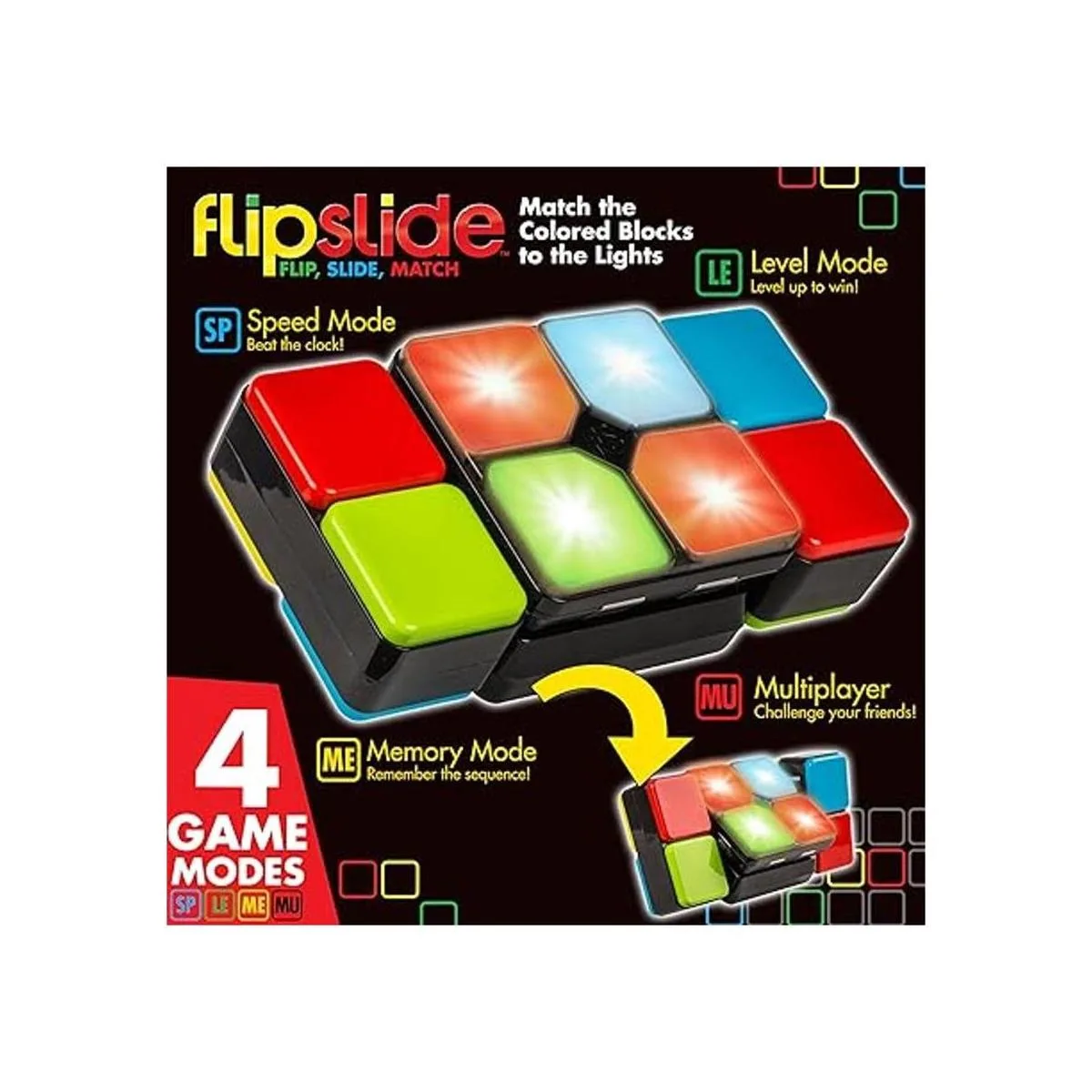 Juego Flipslide, juego electrónico de mano Voltea, desliza y combina los colores para superar el reloj 4 modos de juego, diversión multijugador