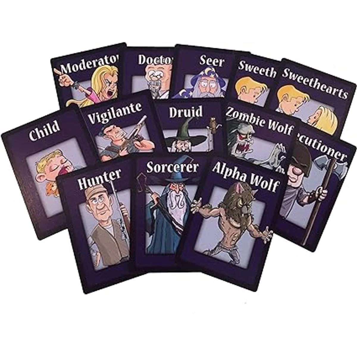 Viene con bolsa 36 tarjetas, manual de instrucciones, y un logotipo de hombre lobo.