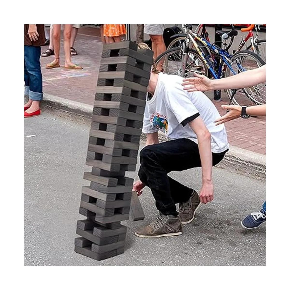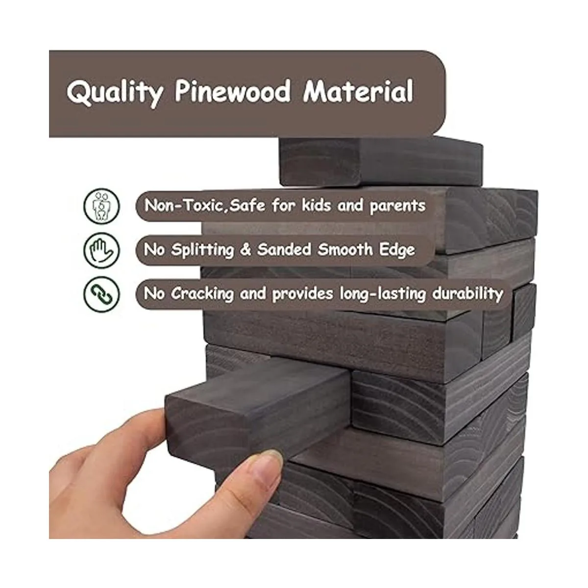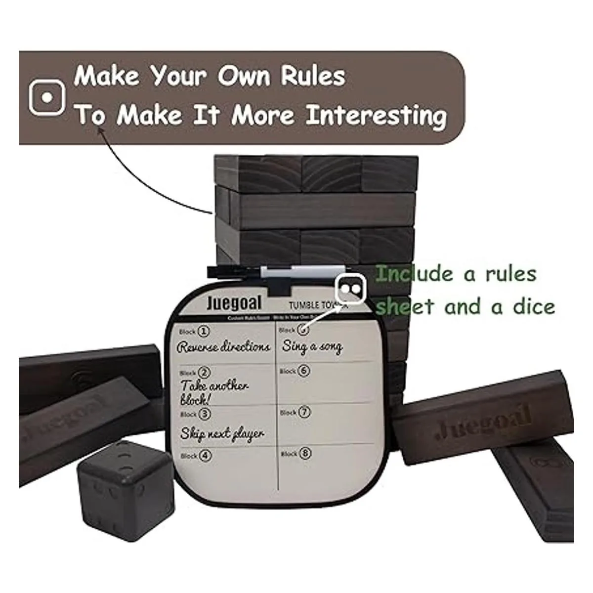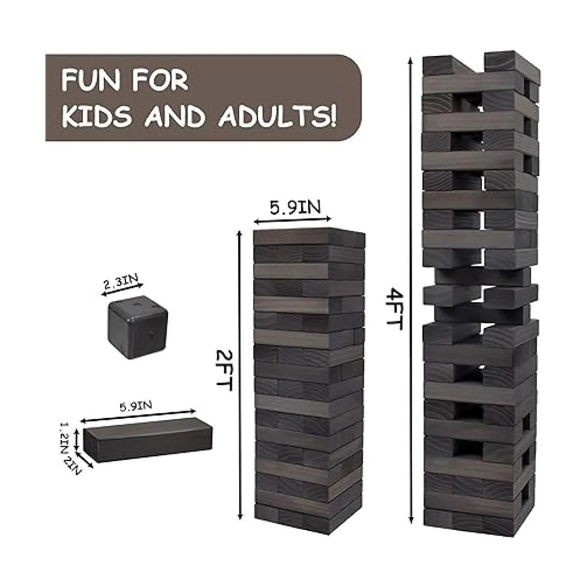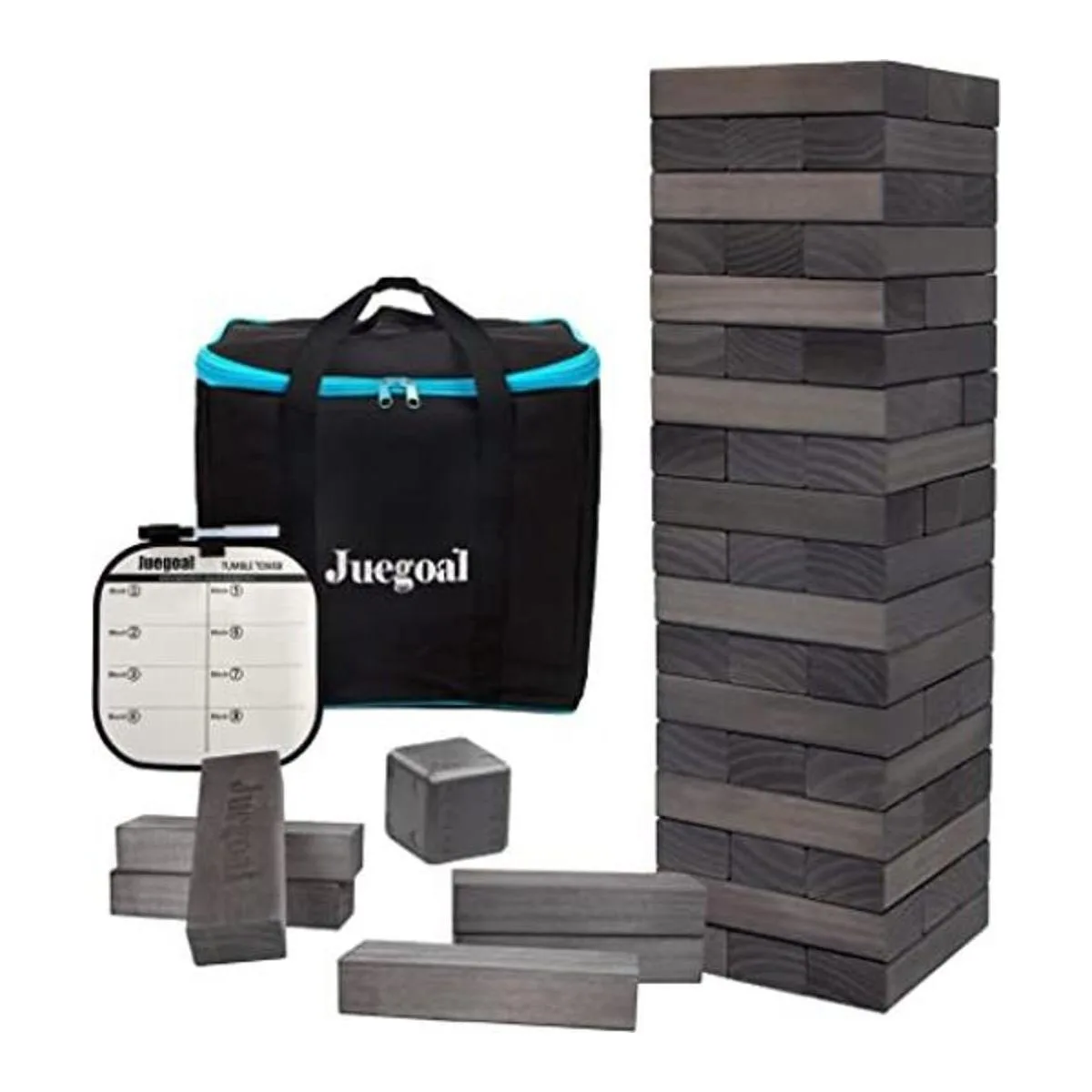 Juego de madera gigante: el juego de torre gigante de color gris Juegoal viene con 54 bloques de madera para secadora, 1 dado de madera, 1 tablero de juego con bolígrafo y una bolsa con cremallera. Cada bloque es de 5.9 x 2 x 1.2 pulgadas, 2 pies 18 filas se puede cultivar hasta 4 pies de altura cuando se juega. Un gran juego divertido y de apilamiento rápido y juego en interiores o exteriores para todas las edades.