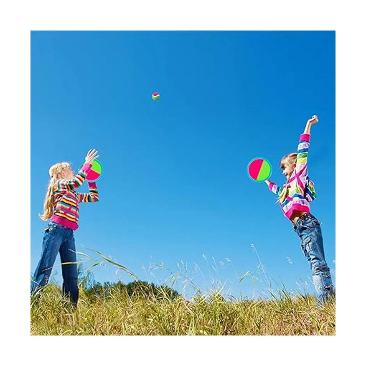 Divertido juego al aire libre para niños: nuestro juego de bolas de captura incluye 4 bolas y 4 palas, 1 bolsa de almacenamiento. Es fácil de jugar, un lado lanza la pelota y el otro atrapa la pelota. Este juego puede ser jugado por 24 personas, que es flexible y divertido para unir tanto a niños como a adultos para jugar.