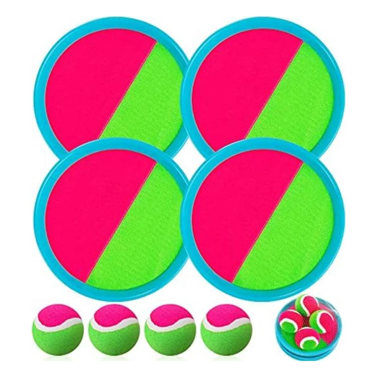 Juegos al aire libre para niños, juegos de playa para lanzar y atrapar pelotas, juegos de playa para niños con 4 palas, 4 bolas y 1 bolsa de almacenamiento, juegos de patio al aire libre, juegos de parque infantil para patios traserosniñosadultosfamilia