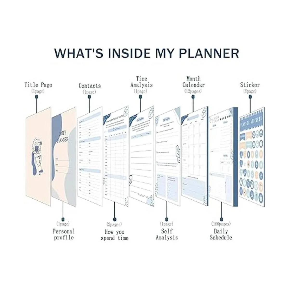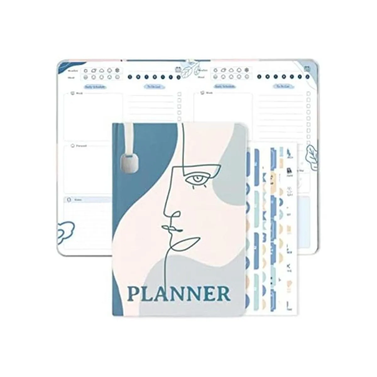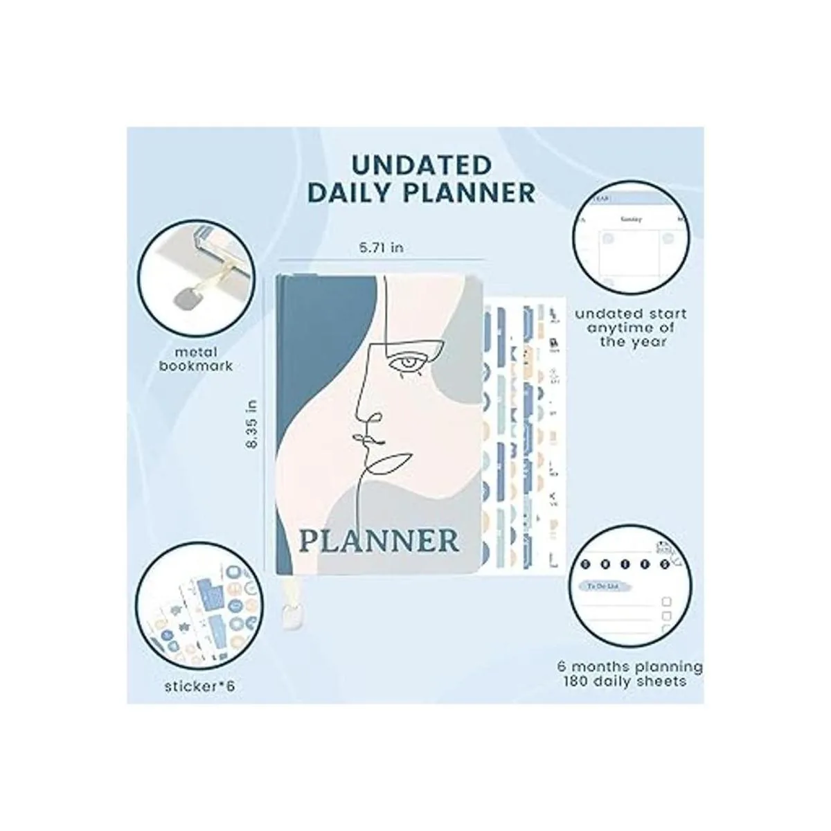 JueNi Agenda diaria de tareas pendientes con calcomanías 8 x 6 pulgadas 2022 NUEVO 6 meses sin fecha, agenda académica con calcomanías para gestión del tiempo, suministros de oficina para organizar citas y horarios, planificar agendas y aumentar la productividad, azul abstracto