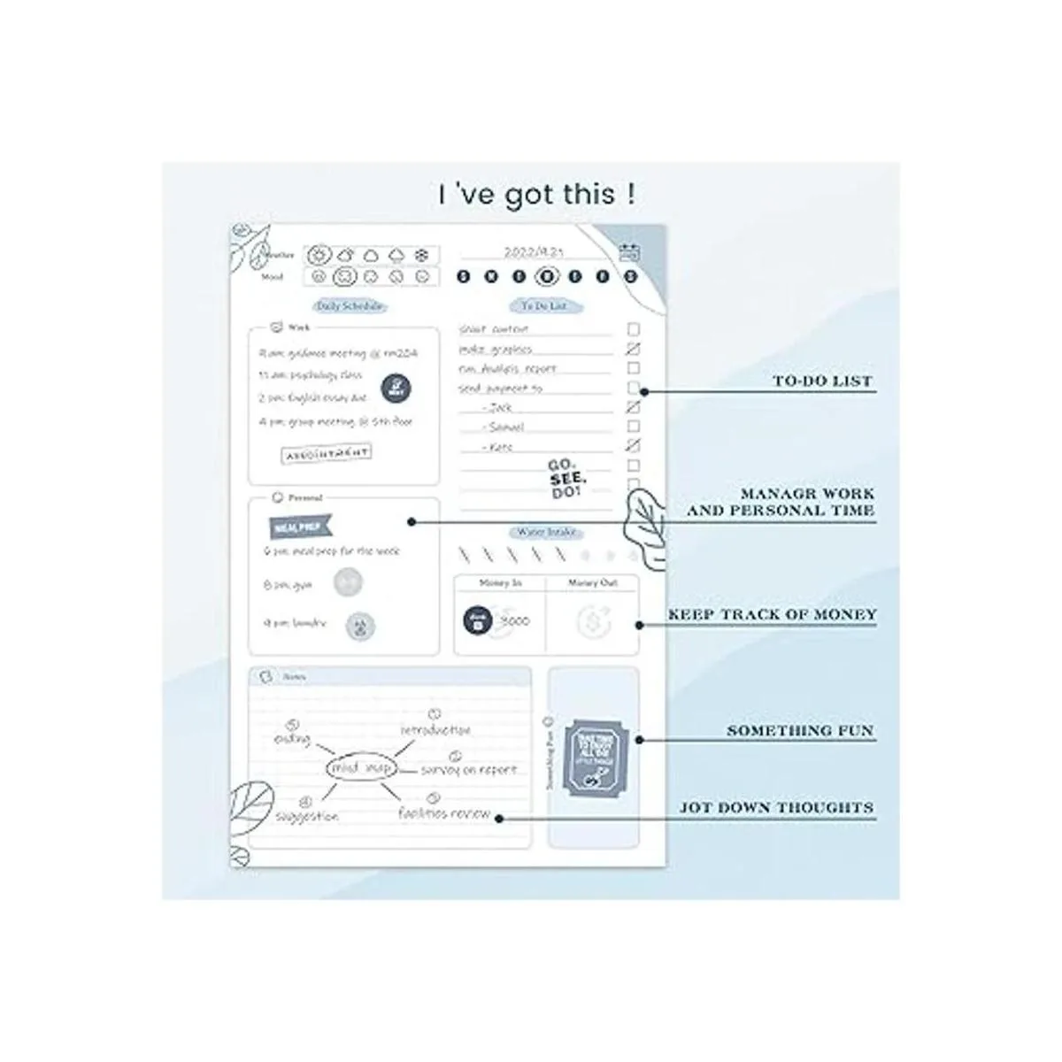 Comienza cualquier momento: el planificador diario de listas de tareas no tiene fecha y puede funcionar para cualquier fecha y año calendario. Así que nunca es demasiado tarde para empezar. Prepárate para combatir la procrastinación hoy, no pierdas más tiempo