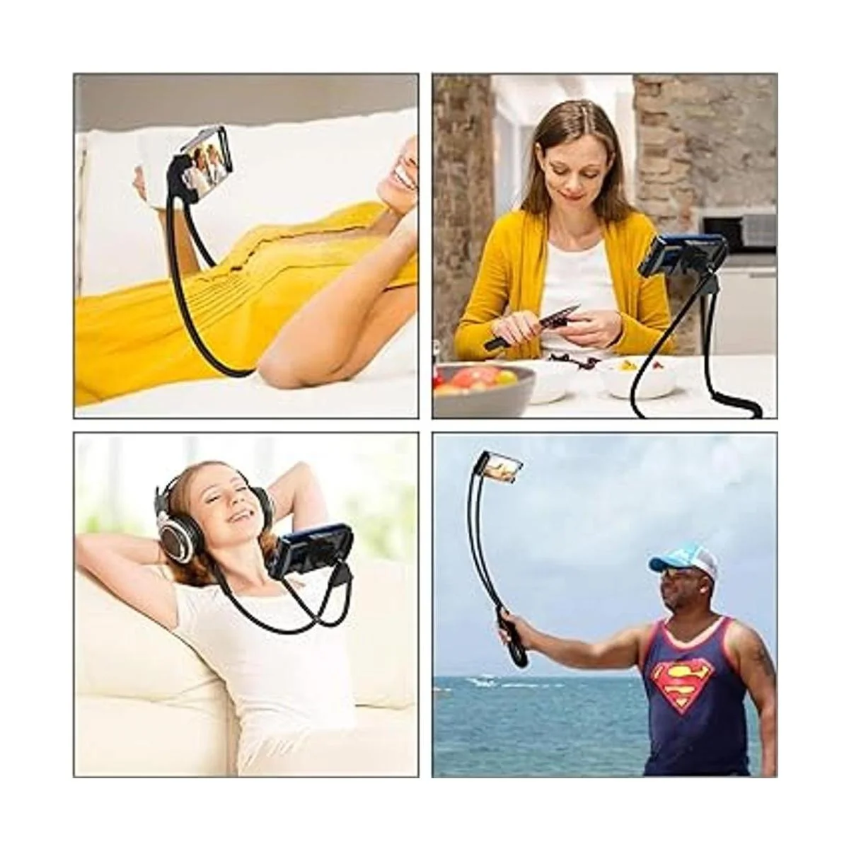 Libera tus manos: este soporte para teléfono celular de brazo largo con manos libres se puede doblar a cualquier forma que desees, colgando de tu cintura o cuello para disfrutar de tus videos. Puedes ponerlo en tu cama, sofá, escritorio o suelo. Cuando salgas, puedes montarlo en el volante de tu coche o bicicleta.