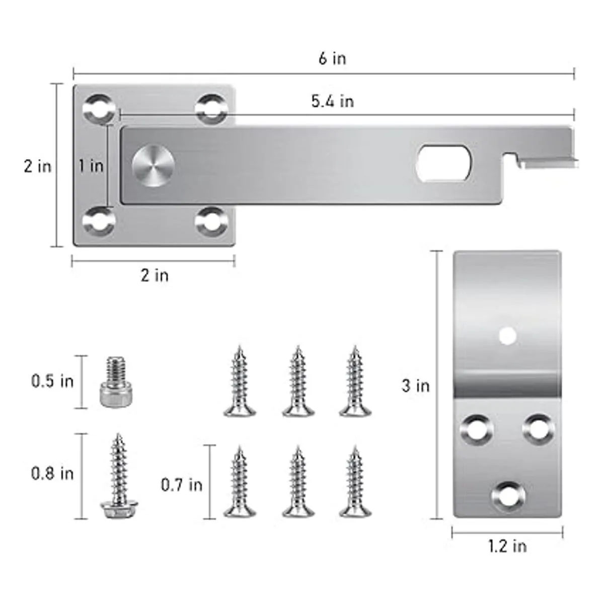 Acero de calidad: este pestillo de puerta de granero está hecho de acero inoxidable, tratamiento superficial: dibujo de alambre. El material de acero de calidad determina su rendimiento impermeable y a prueba de óxido, que es adecuado para la exposición a largo plazo a la luz solar y al viento y la lluvia al aire libre. El color moderno de alta calidad también es adecuado para escenas interiores.