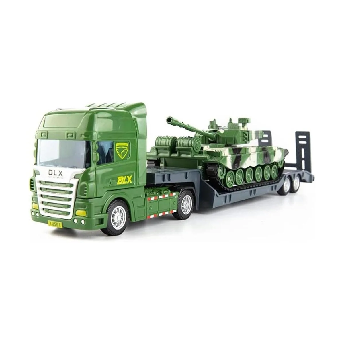 Juguete de camión plano con tanque, juguetes del ejército con tanque, camiones de juguete semicanamente planos, camiones de construcción para niños pequeños, regalo para niños pequeños de 3 años en adelante