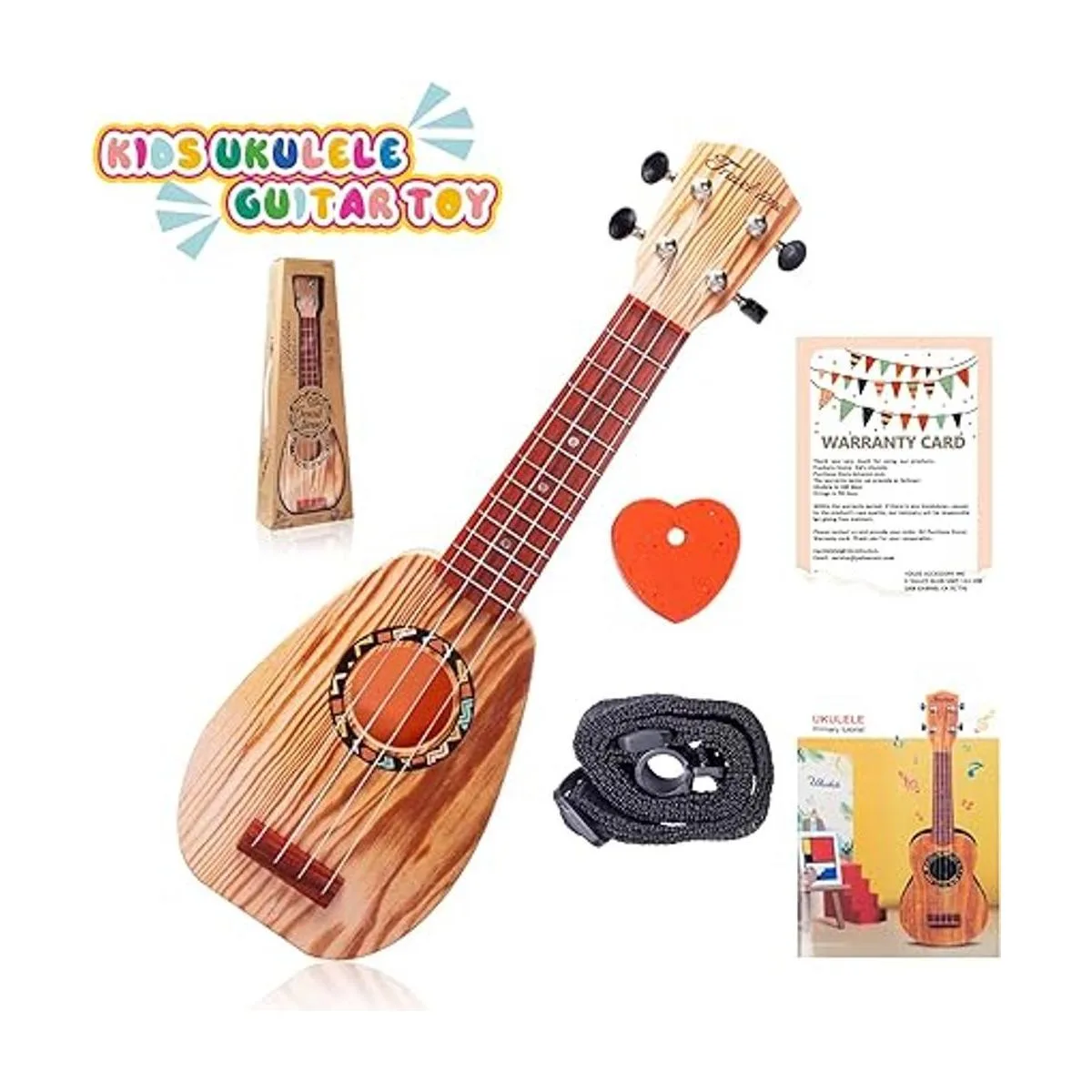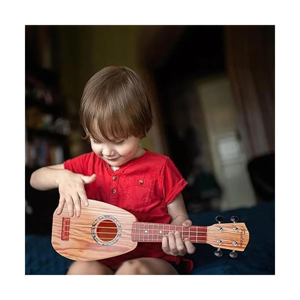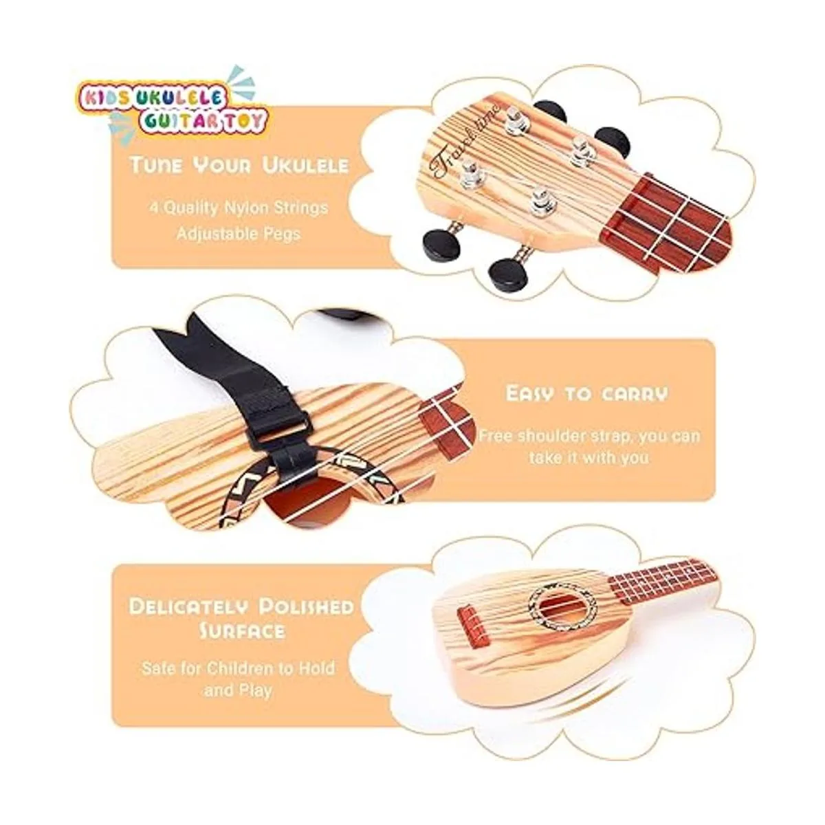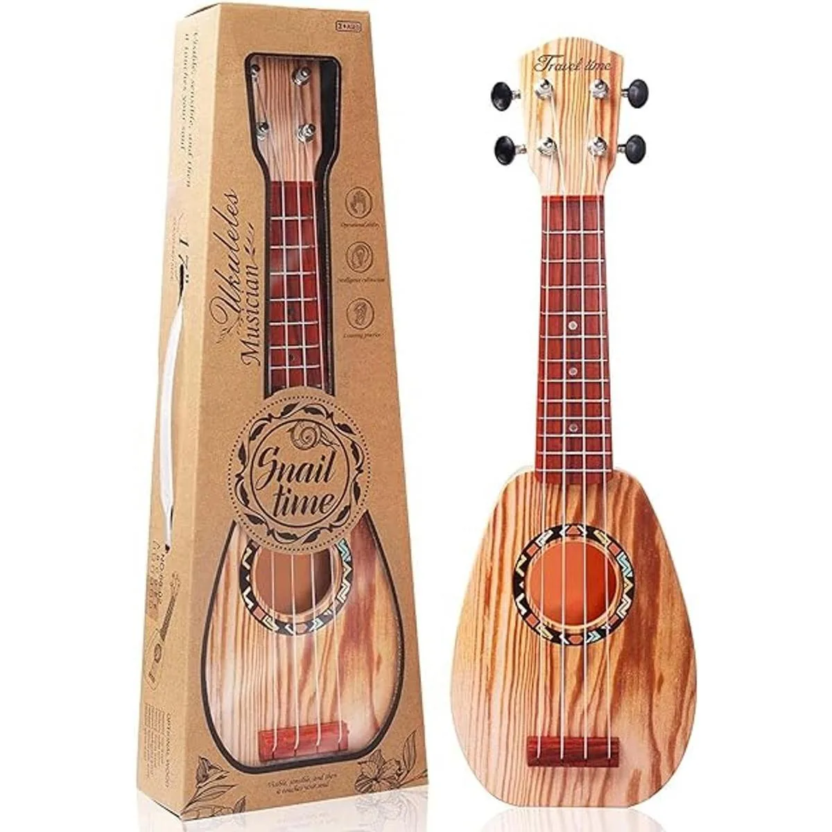 Juguete de guitarra de ukelele para niños de 17 pulgadas, 4 cuerdas, mini instrumentos musicales para niños, juguete educativo de aprendizaje para niños pequeños, principiantes, mantener el tono antiimpacto, puede jugar con púascorreatutorial primario madera de primavera