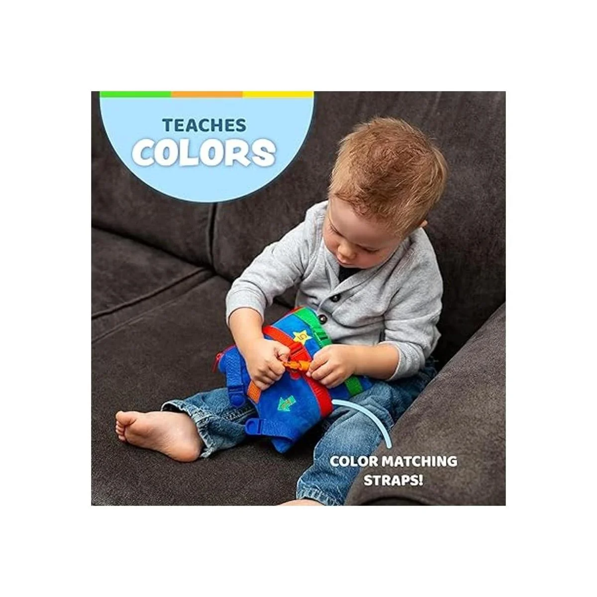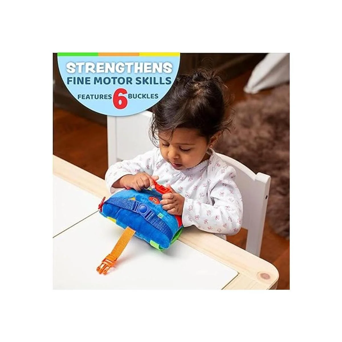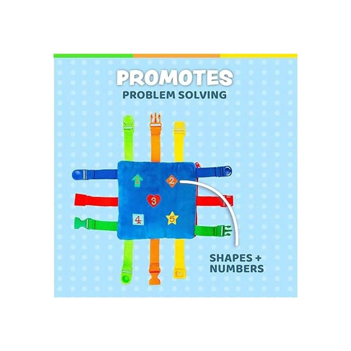 Juguete de hebilla – Boomer Square – Actividad de aprendizaje para niños pequeños – Desarrolla habilidades motoras y resolución de problemas