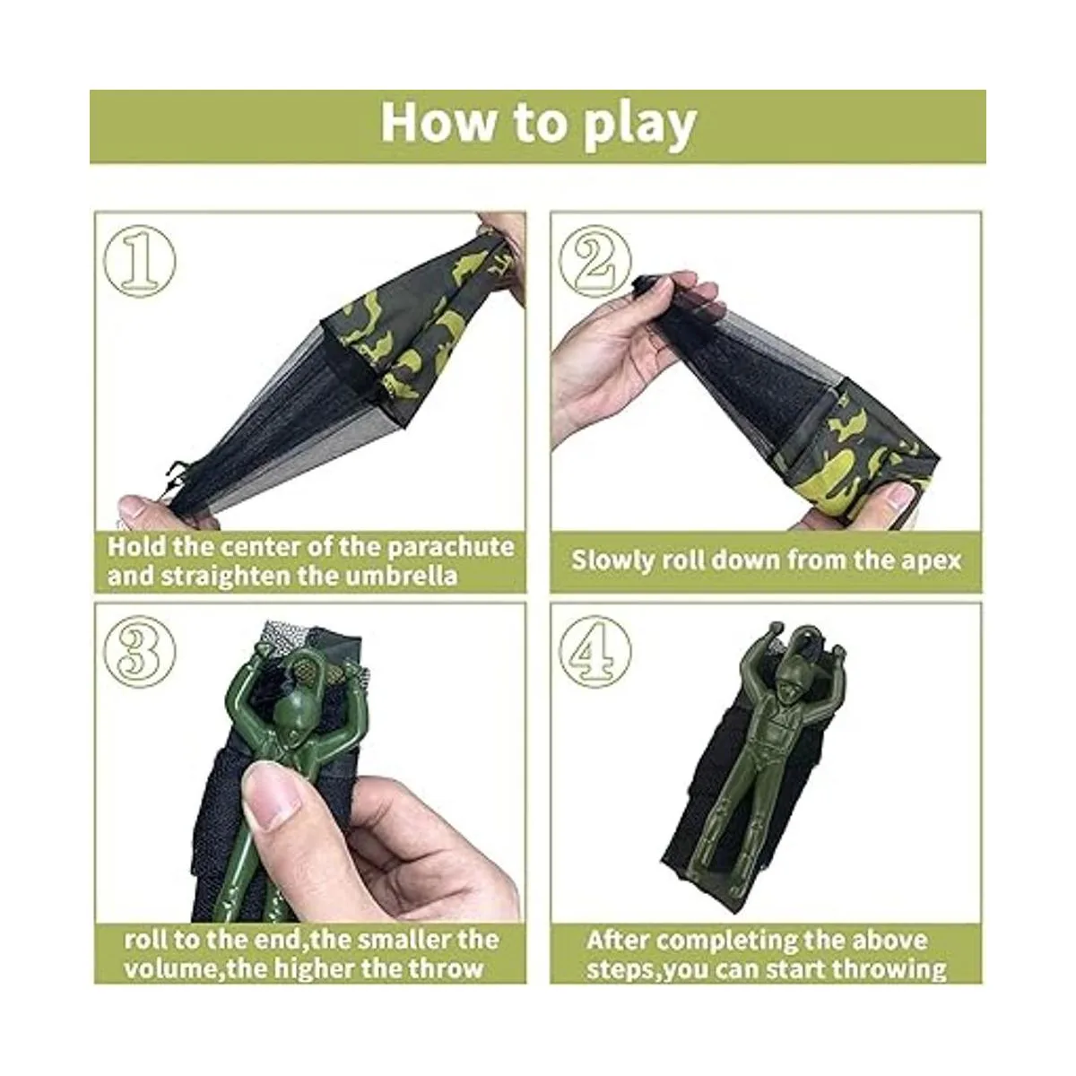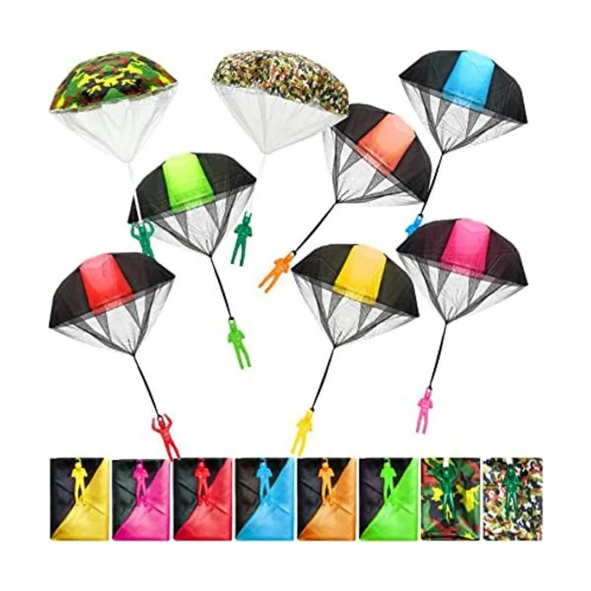 Varios colores: el juguete de paracaídas tiene 8 colores, incluyendo rojo, amarillo, azul, rojo rosa, naranja, verde, verde militar, camuflaje.