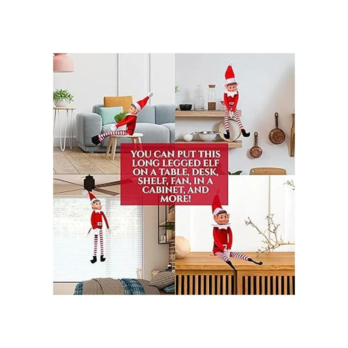 Flexible, por lo que puedes poner el elfo en cualquier lugar: este elfette de peluche flexible viene con un cuerpo suave y brazos y piernas móviles. Puedes poner este elfo de patas largas en una mesa, escritorio, estante, ventilador, en un armario y mucho más