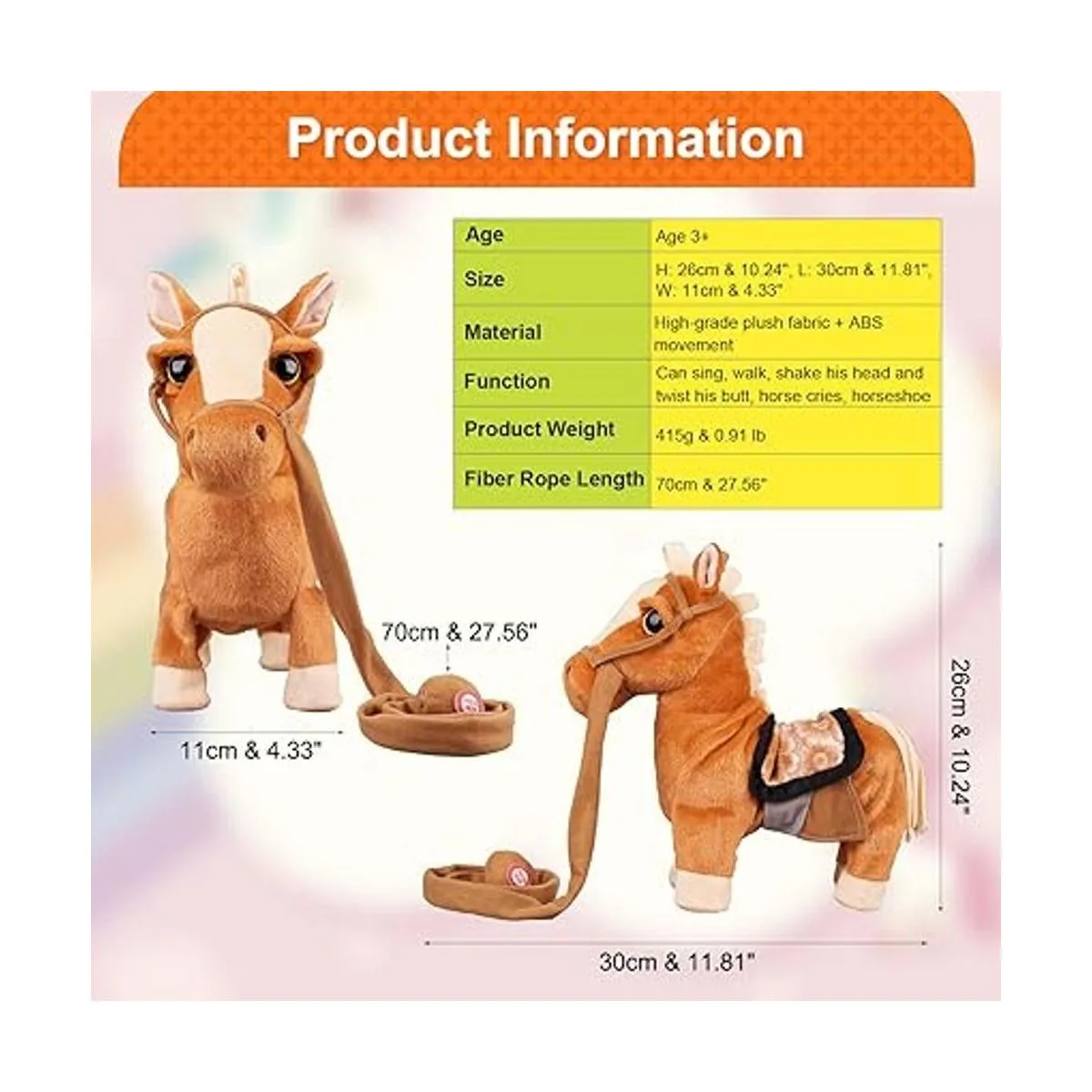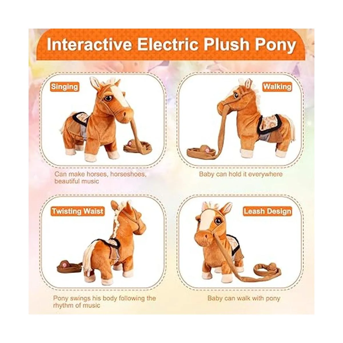 Juguete de poni para caminar, cantar musical, bailar, peluche interactivo de poni para caminar a lo largo de caballo con correa, robot de poni de peluche, juguete para niños y niñas, niños o niños pequeños H 11.81 pulgadas