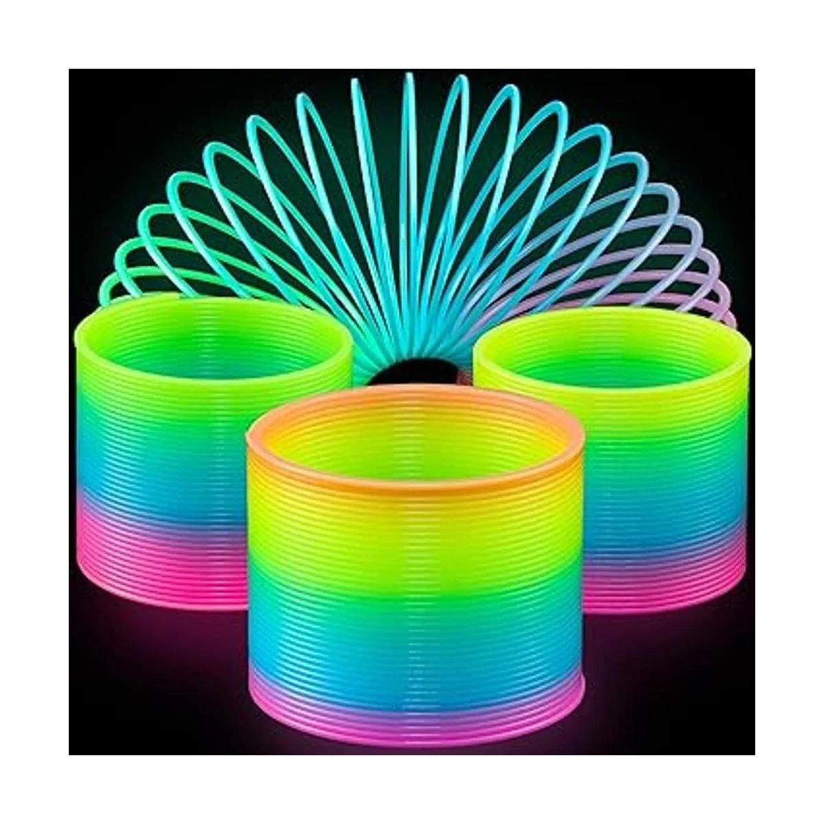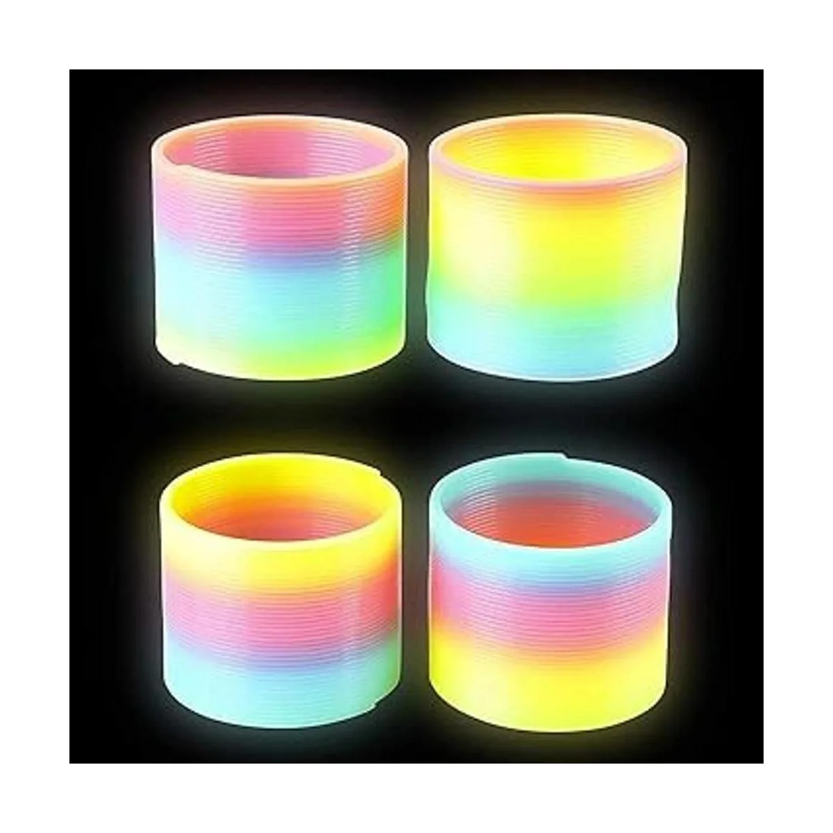 Juguete de resorte de bobina que brilla en la oscuridad de 3.0 in, paquete de 4, coloridos juguetes de resorte mágicos de neón para niñas o niños, resortes de plástico para divertidas ideas de regalo de cumpleaños, premios de juego y regalos de fiesta para niños