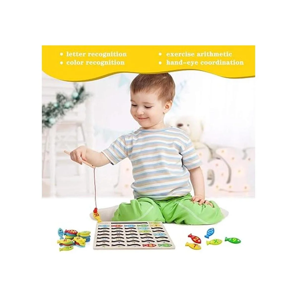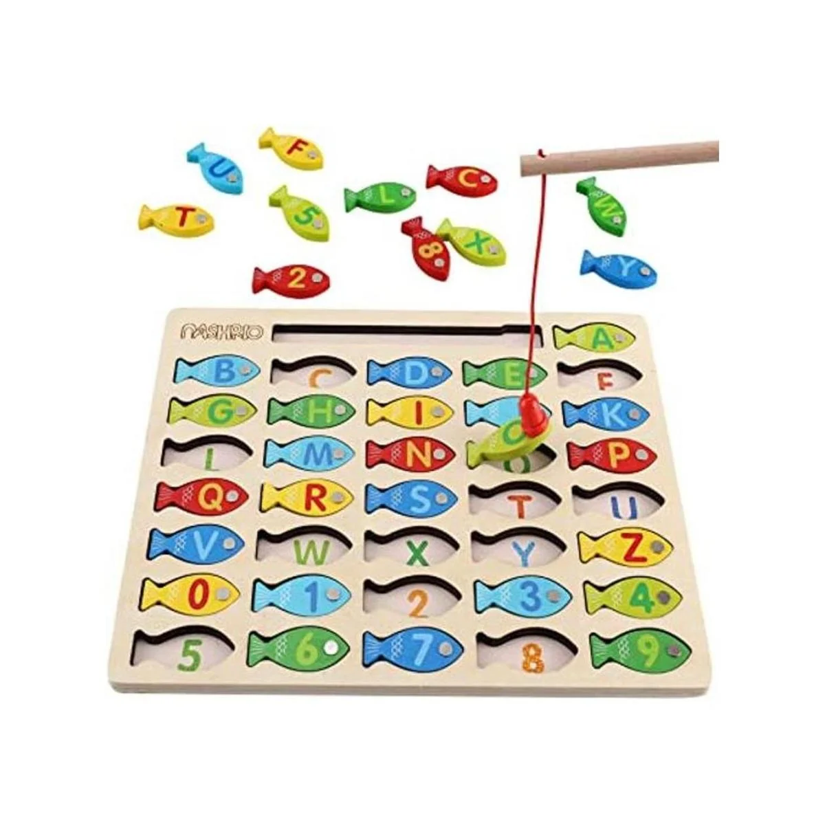 Juguete magnético de madera de pesca para niños pequeños, juegos de conteo de peces del alfabeto, rompecabezas con números y letras, aprendizaje preescolar ABC y matemáticas, juguetes educativos para niñas de 3, 4, 5 años