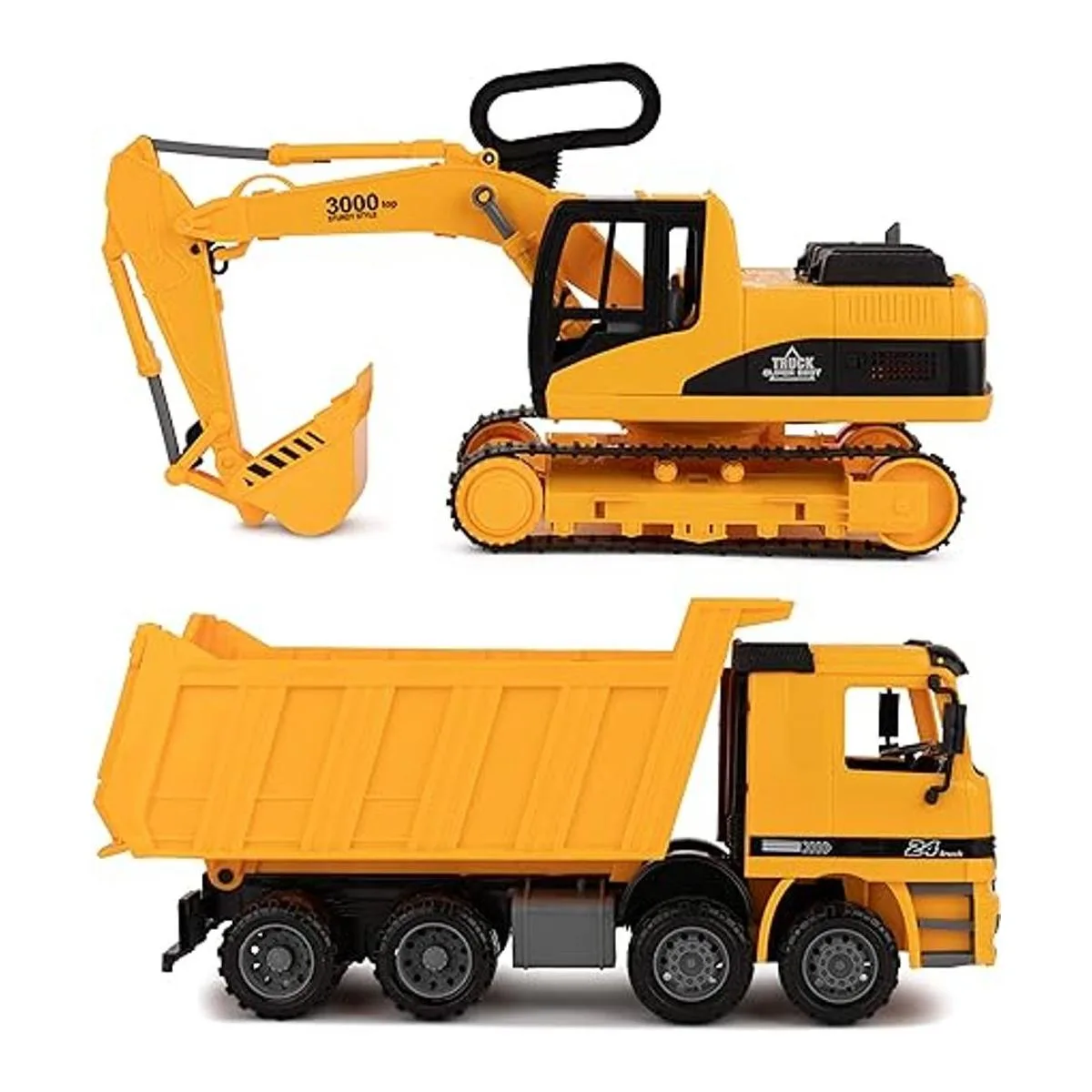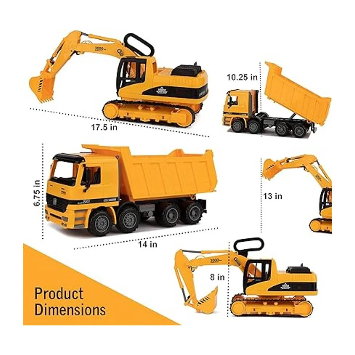 Juego de 2: Duplica la diversión. Nuestro juego de camión de construcción viene con una retroexcavadora y un camión de volteo. La retroexcavadora se puede utilizar para cavar grandes piezas de tierra y el camión de volteo se puede utilizar para transportar arena, grava e incluso pequeños juguetes de un lugar a otro.