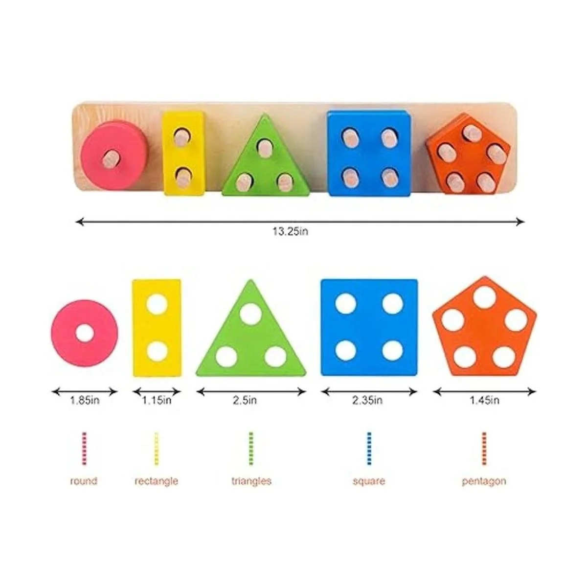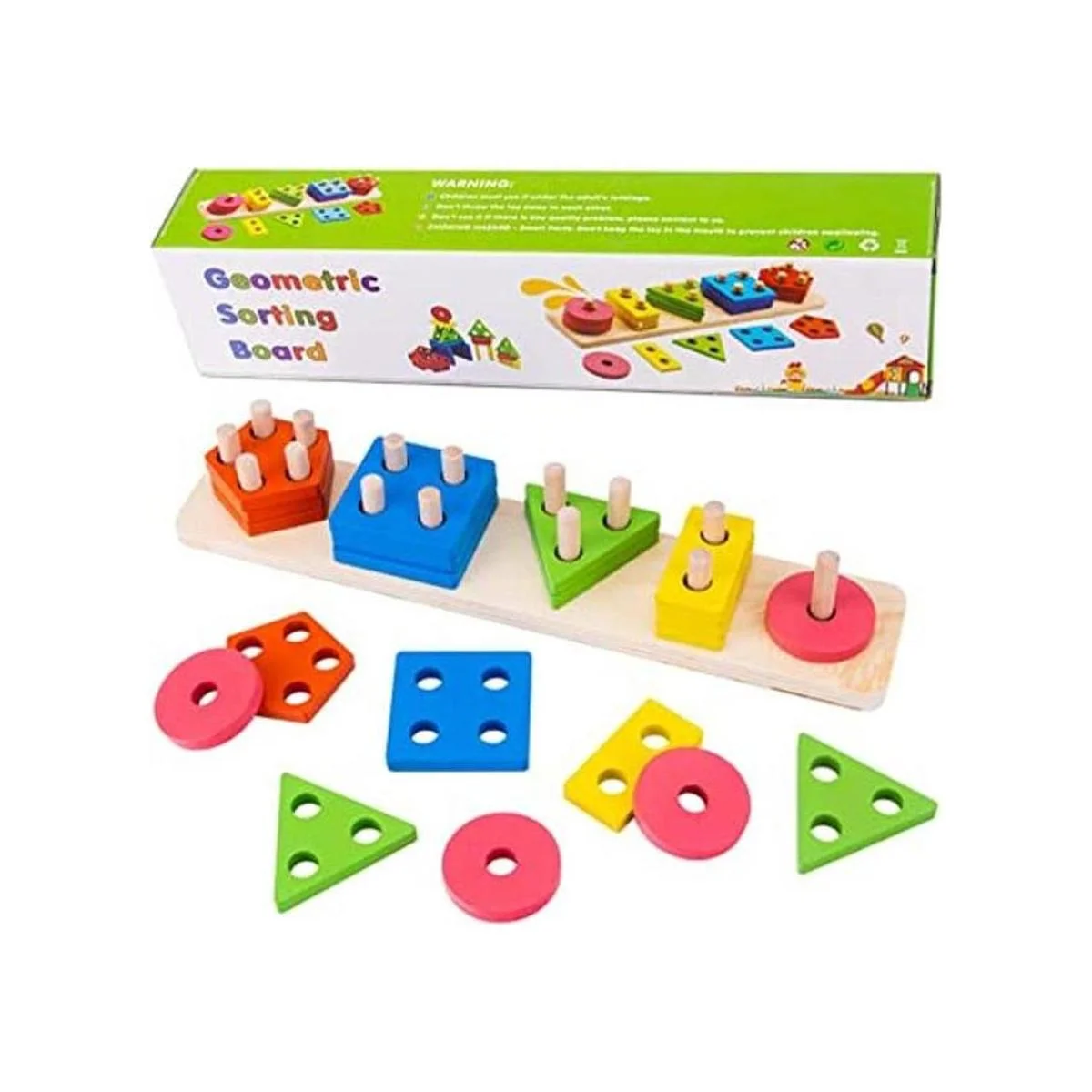 Juguete para niños de formas geométricas con base y piezas de madera coloridas apilables para aprender a clasificar colores y formas