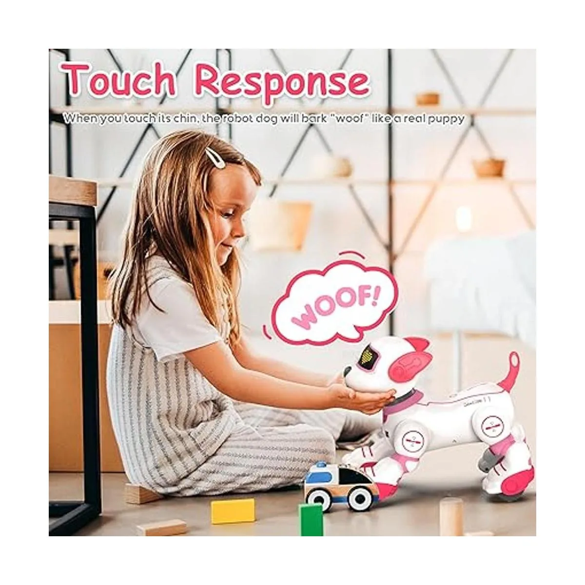 Juguete programable inteligente: puedes programar al perro robot para que funcione de acuerdo a tus demandas y luego reproducirá tu demanda como adelante, empujar, sentarse y bailar u otras acciones. El perro inteligente grabará hasta 100 comandos, ayudará a tus hijos a utilizar su imaginación y creatividad para practicar simplemente programación