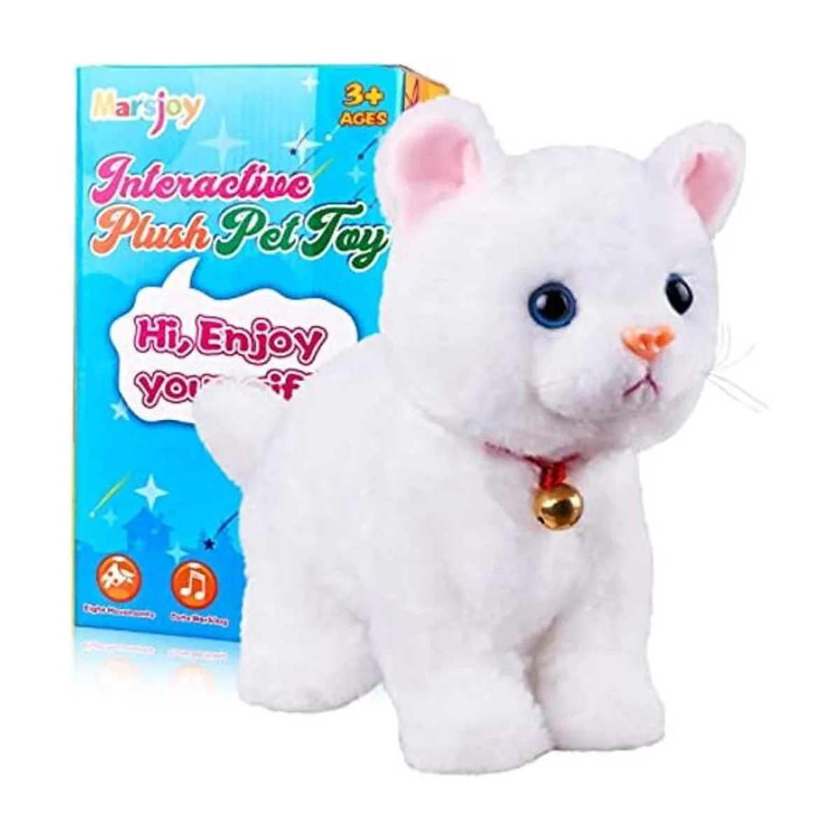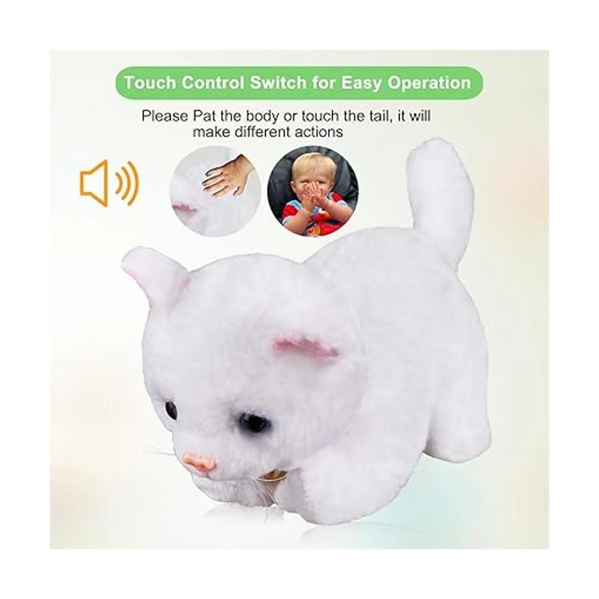 Juguete robot interactivo de peluche blanco de gato, gato robótico ladrando miow, gatito con control táctil, mascota electrónica para gato, gato robótico, gato gato, gato gato, juguete animado para niñas y niños de largo x 12 pulgadas de alto x 8 pulgadas