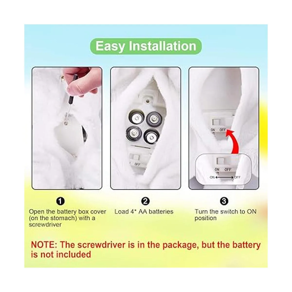 Nota: no se puede caminar, 4 pilas AA no incluidas, peligro de asfixia, piezas pequeñas: Advertencia: peligro de asfixia, piezas pequeñas. No apto para niños menores de 3 años. L: 12 pulgadas x 8 pulgadas x ancho: 5 pulgadas. El CAT utiliza 4 pilas AA que no están incluidas en el paquete; no puede caminar, este juguete puede ladrar, no puede reproducir música; no es adecuado para niños menores 3 años.