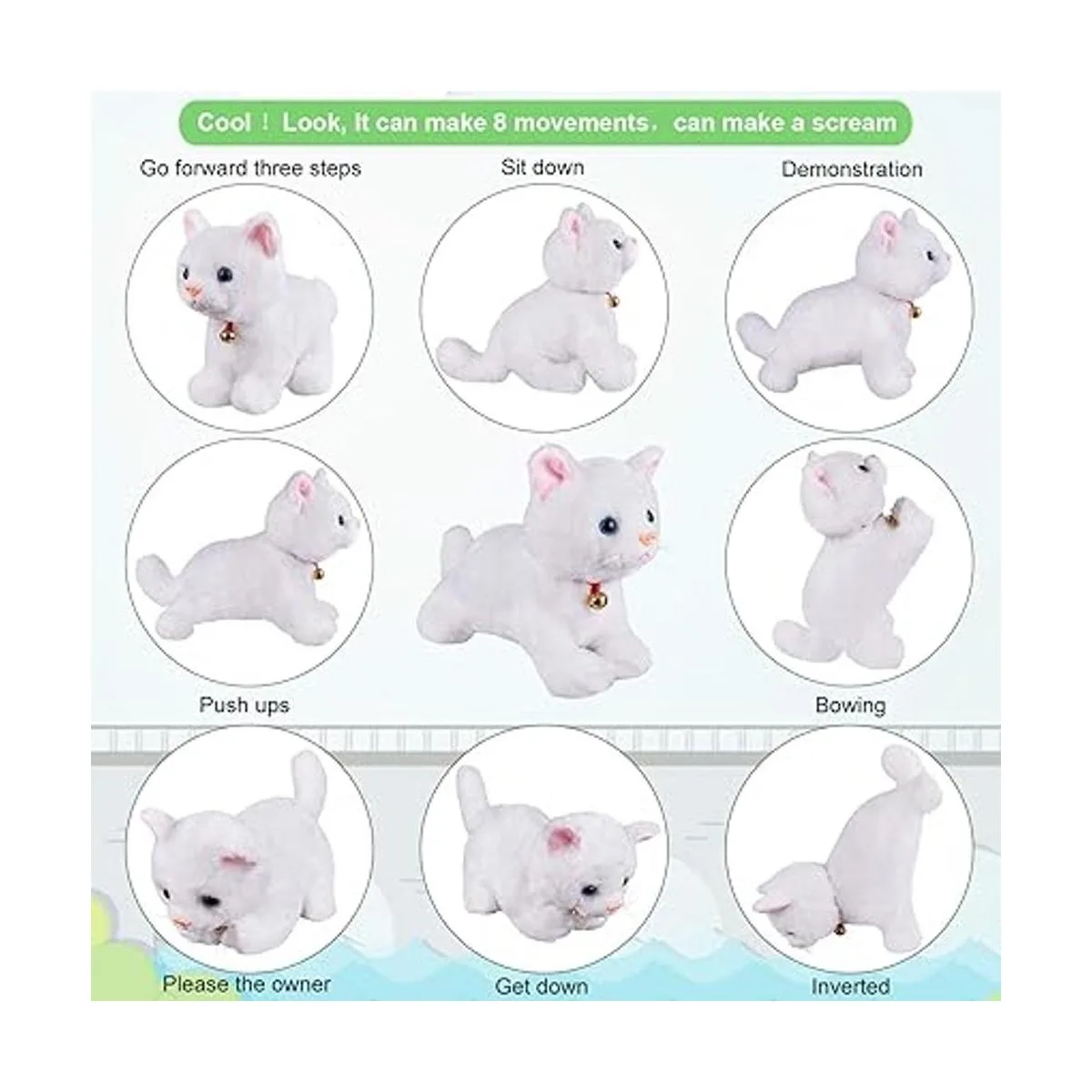 Puede hacer 8 movimientos, miow maullido, control táctil: hará todo tipo de trucos como voltear, aplaudir manos, arquear, boca abajo, gatear, agitar el cuerpo para buscar acariciar de mi maestro siempre y cuando toques suavemente su cola, y también suena un grito de corteza o baa.