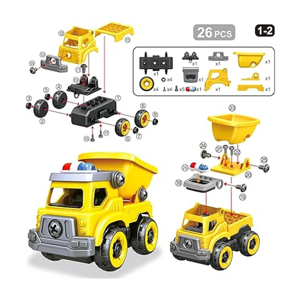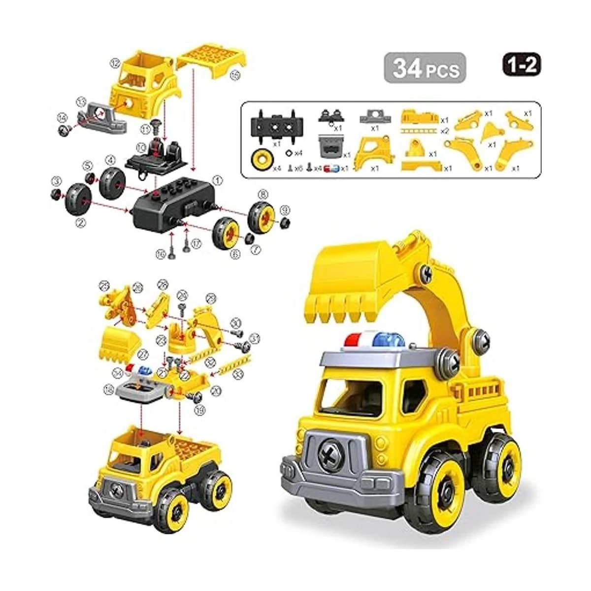 Ideal para niños de todas las edades: fácil de montar y desmontar para un niño, se puede convertir fácilmente en 4 camiones diferentes, bastante educativos e interactivos. El juguete proporciona un juego infinito con las herramientas y desmontar los vehículos de construcción que son buenos para las habilidades motoras, la coordinación ojomano, la creatividad, este es un gran juguete STEM para niños y niñas.