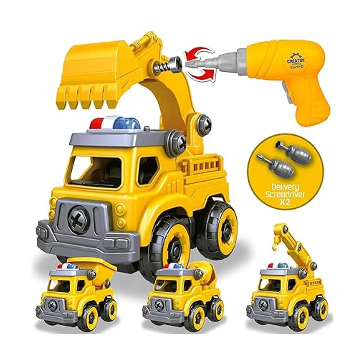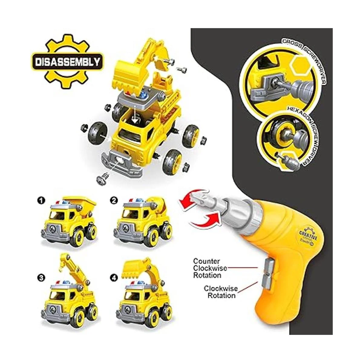 Juguetes de construcción 4 en 1: este juego de vehículo de construcción de ingeniería viene con una herramienta de taladro electrónico que permite a un niño separar los camiones y volver a montarlos. Realmente educativo y motiva a los niños a aprender más sobre cómo desarrollar y mejorar las habilidades prácticas