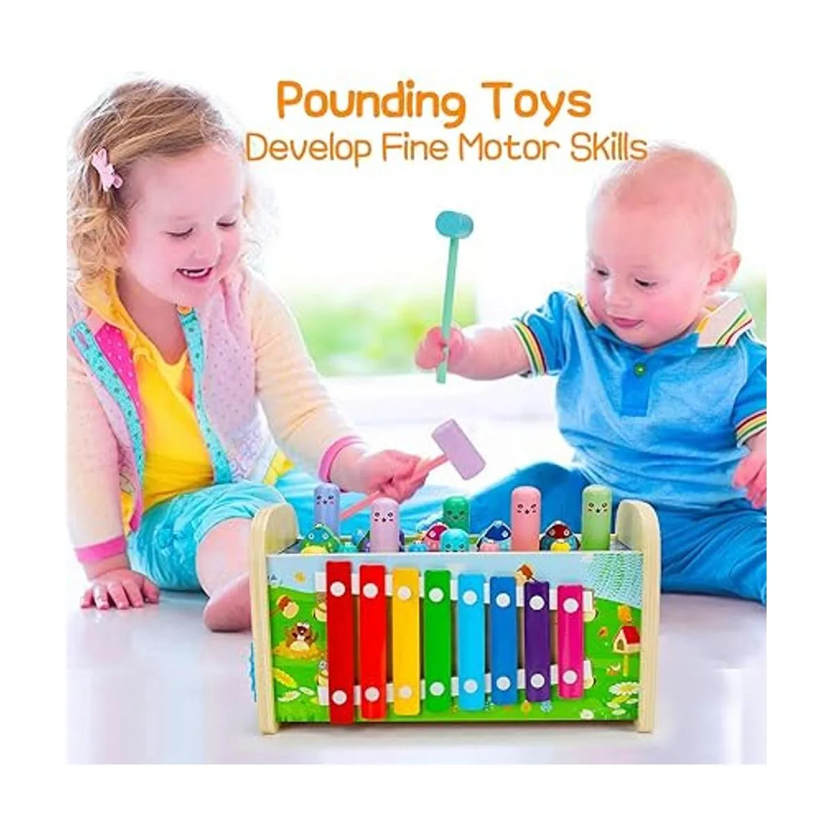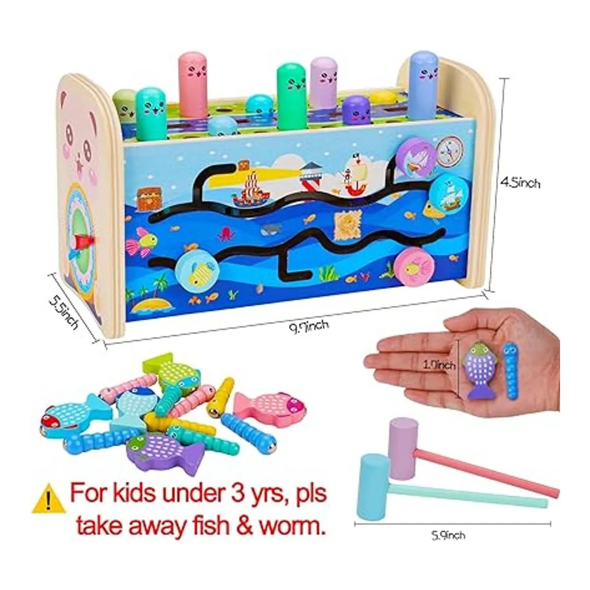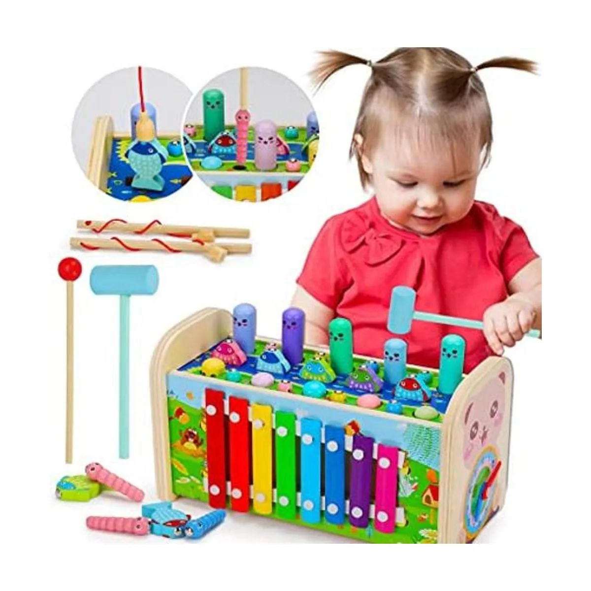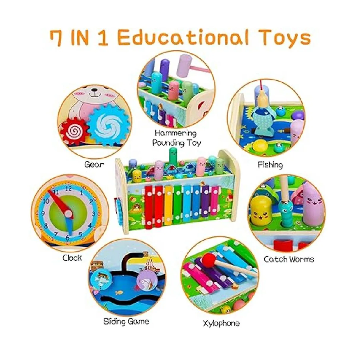 Juguetes 7 en 1 para martillar golpear juguetes de madera Montessori juego educativo de pesca xilófono para bebés de 1, 2, 3 años, juguete sensorial de desarrollo de habilidades motoras finas, preescolares, actividades para niños pequeños, regalo de 1 a 2 a 4 años