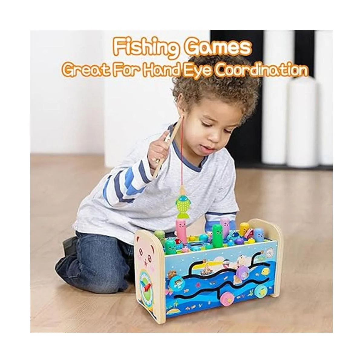 Cubo de actividades con 7 juguetes en 1 para desarrollar aprendizaje temprano : nuestros juguetes Montessori de madera proporcionan 7 formas de aprender y jugar: un juego de golpear a los topos, un xilófono musical, un juego de pesca, uno de atrapar gusanos, un reloj de aprendizaje, discos giratorios y un juego de deslizar en un laberinto. Excelente juguete con múltiples funciones para mantener a tus niños ocupados y felices.