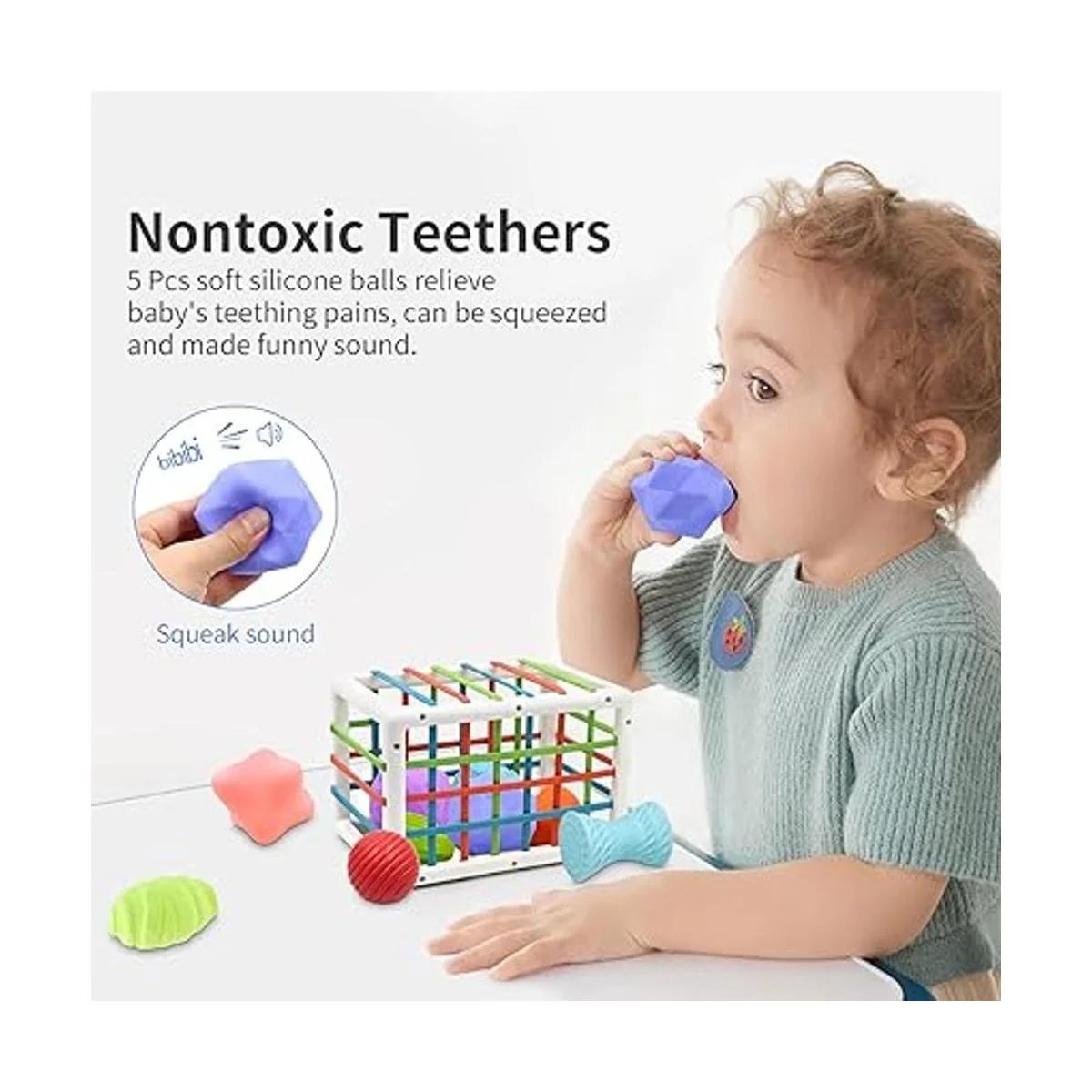 Juguetes clasificadores de formas de bebé para 6, 12 y 18 meses, contenedor sensorial cerebral con 5 bolas texturizadas suaves para niños pequeños de 1, 2, 3 años, regalos para niñas, juguete de actividad Montessori de aprendizaje temprano para niños autistas