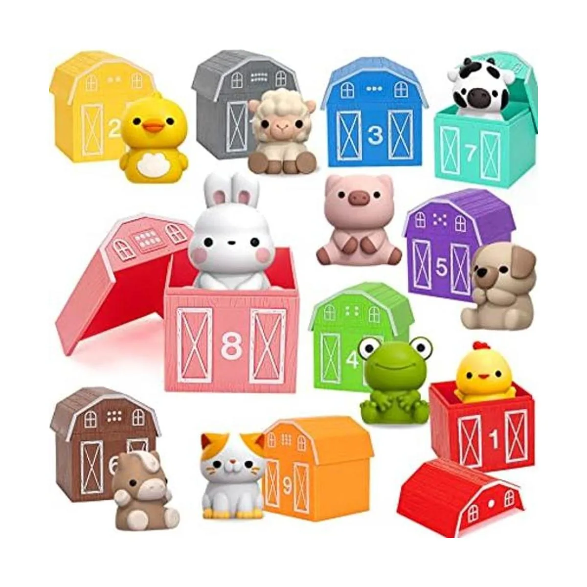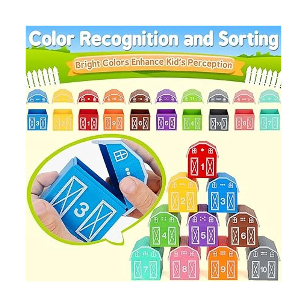 Juguetes de aprendizaje Montessori: los niños pueden conocer y aprender sobre 10 animales de granja diferentes e identificar sus características de nuestros juguetes. Las tapas de granero están impresas con números del 1 al 10, y los cuerpos tienen puntos correspondientes a los números. Los bebés pueden tener divertidos juegos de aprendizaje de números y clasificación de colores basados en estos, ejercitar su conteo, reconocimiento de color, clasificación y habilidades de combinación. Los mejores juguetes educativos de aprendizaje para niños, deja que nuestros lindos animales acompañen a tus hijos durante la infancia