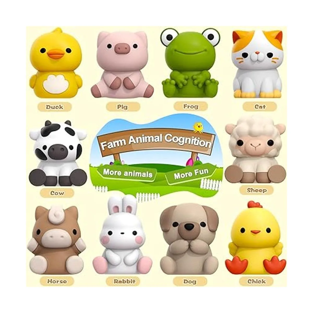 Juego de juguetes de animales de granja: nuestros juguetes de aprendizaje preescolar para niños pequeños contienen 20 piezas, 10 animales de granja y 10 graneros. Los animales son adecuados para las preferencias de los bebés, cada forma está cuidadosamente diseñada, incluyendo gato, perro, pato, vaca, conejos, etc. Los animales lindos y realistas son los socios interesantes de los bebés.